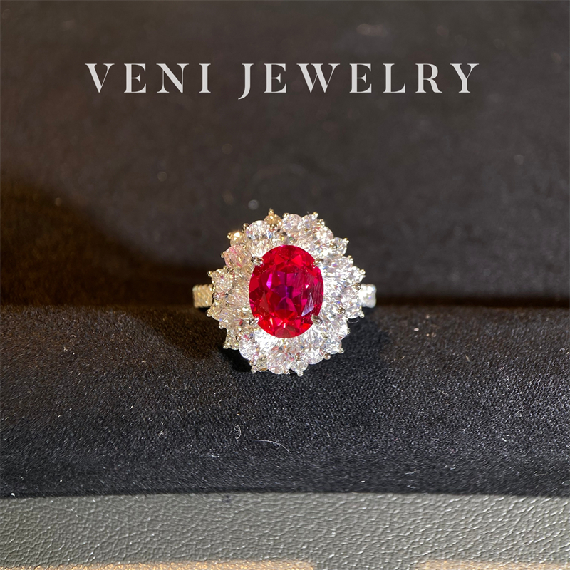 Veni珠宝 月光舒曼 培育红宝石戒指4克拉豪镶满钻鸽子蛋晚宴女H15