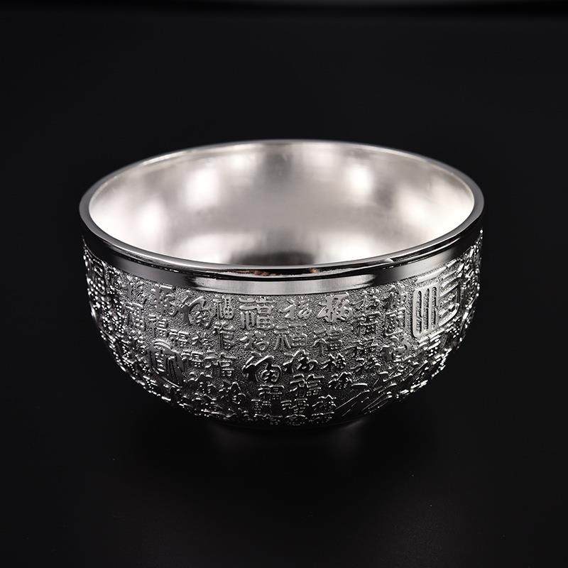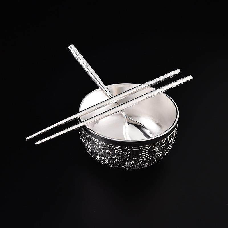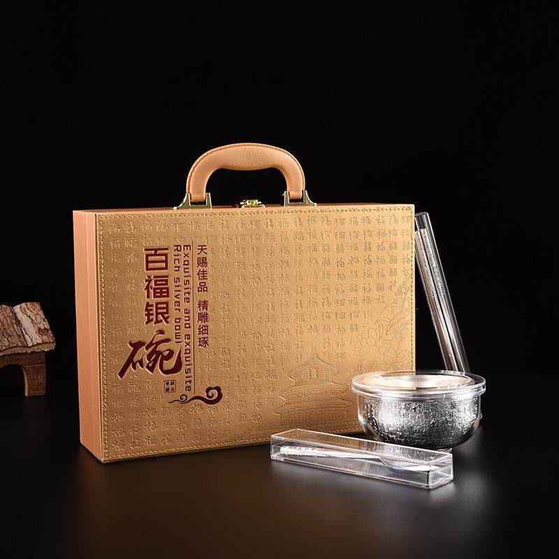 新款百福银碗三件套筷子勺子碗婚庆会销保险制定工艺商务礼品