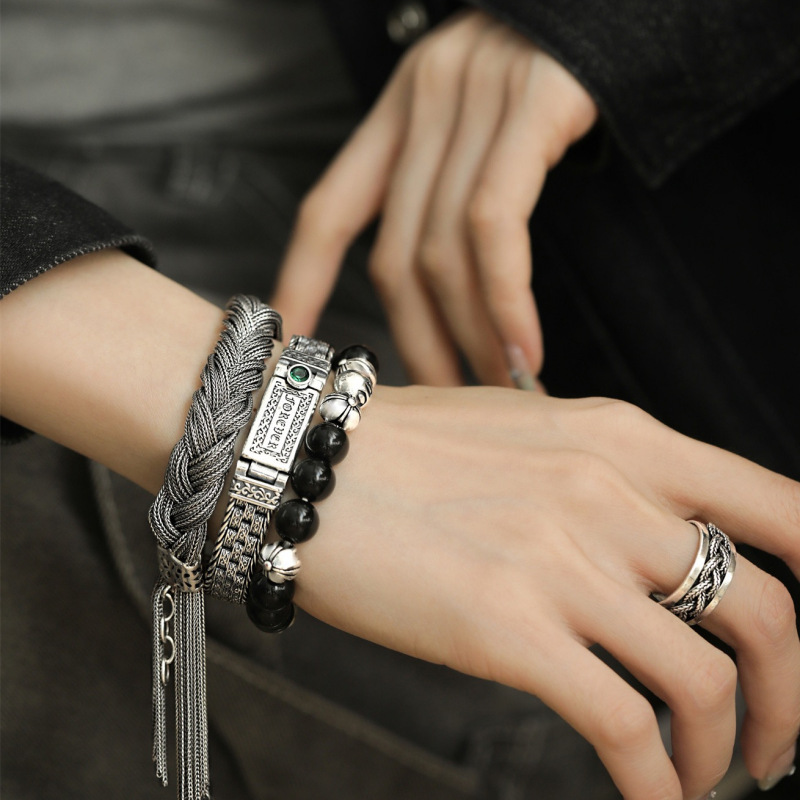 唐草纹六字真言环套环手链男潮流复古潮嘻哈个性男士简约手链