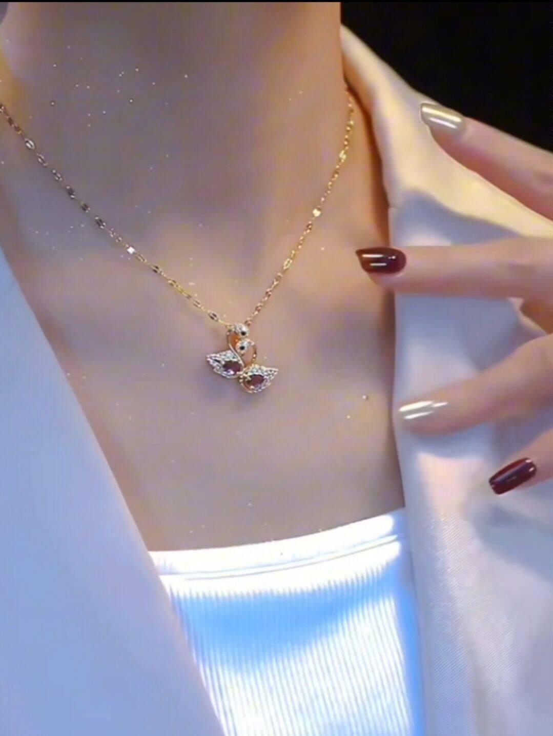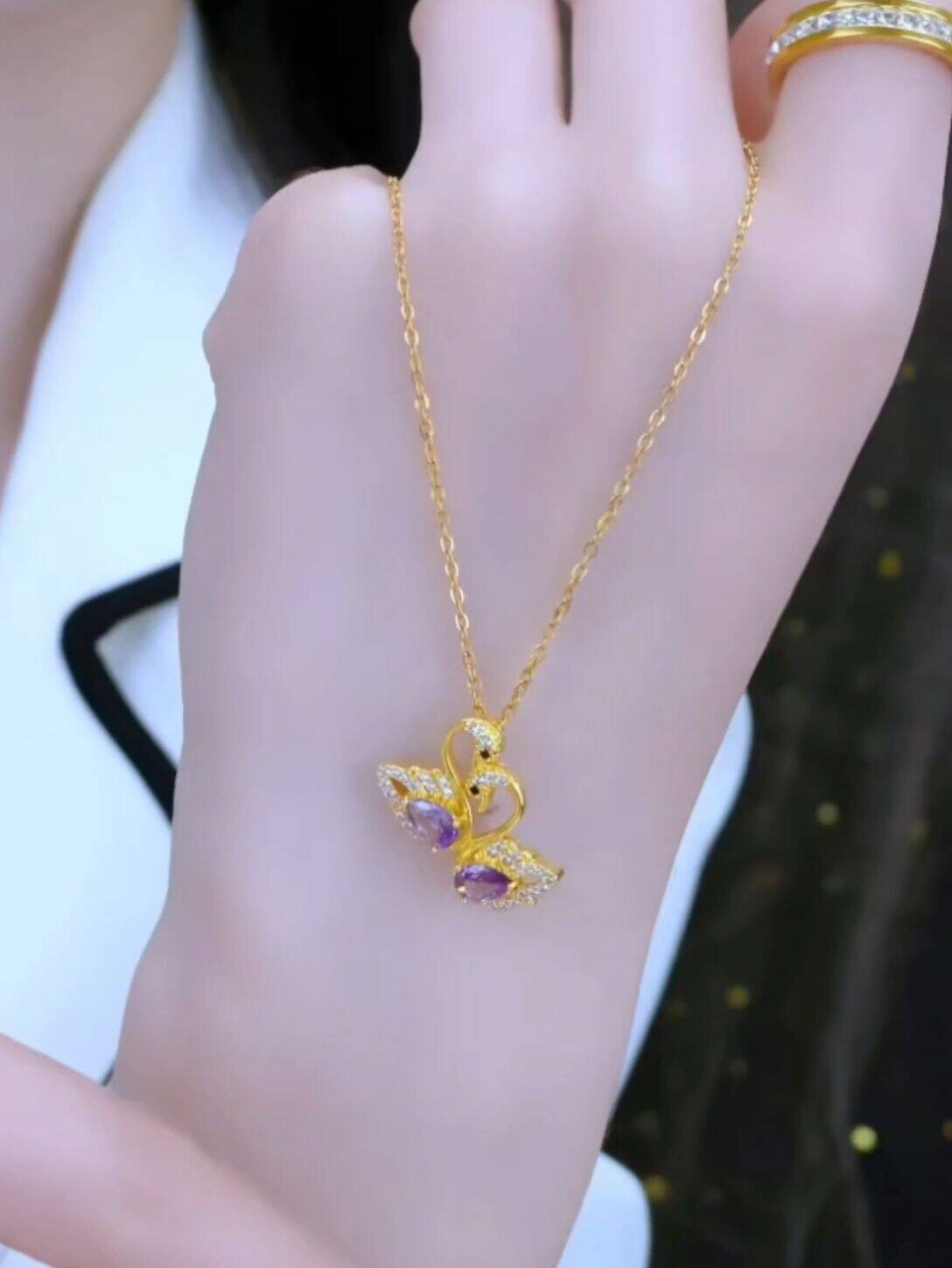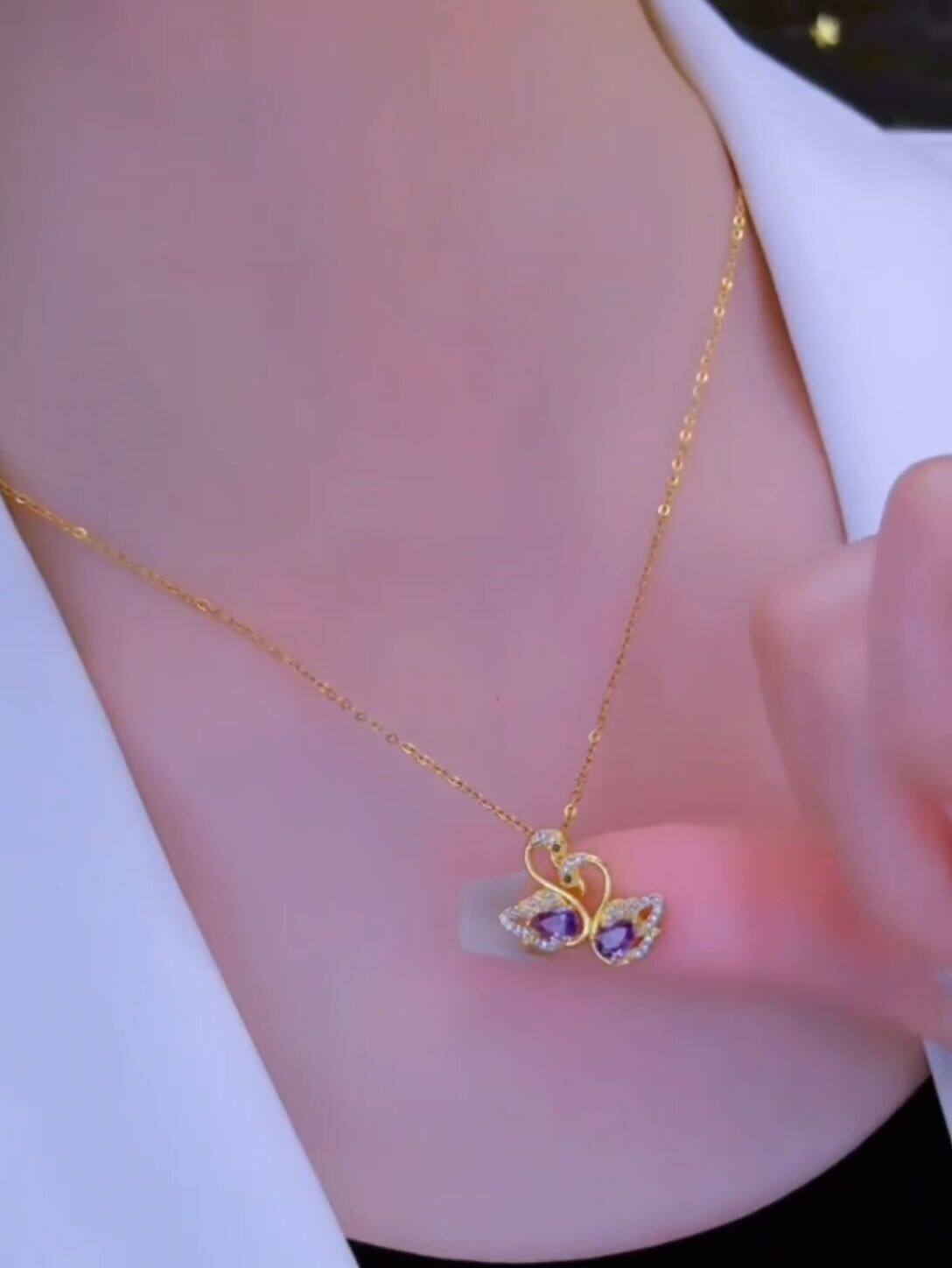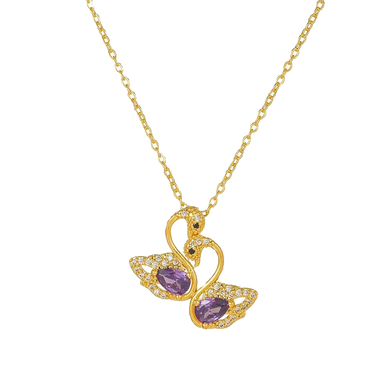 紫色锆石天鹅钛钢项链女新款高级设计感小众轻奢网红锁骨链