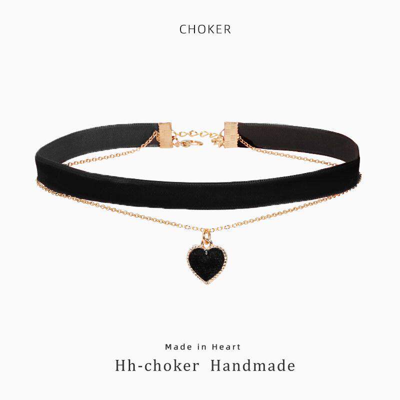 红色爱心双层锁骨链choker女高级设计感小众脖颈链敬酒服项链配饰