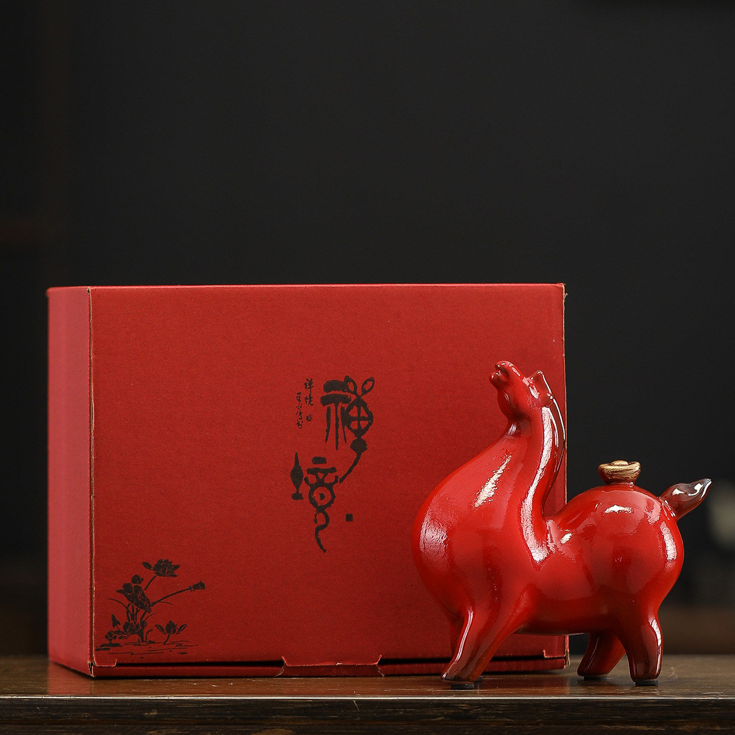 创意红色陶瓷马摆件客厅茶几装饰品祝福寓意桌面工艺品马上有钱礼