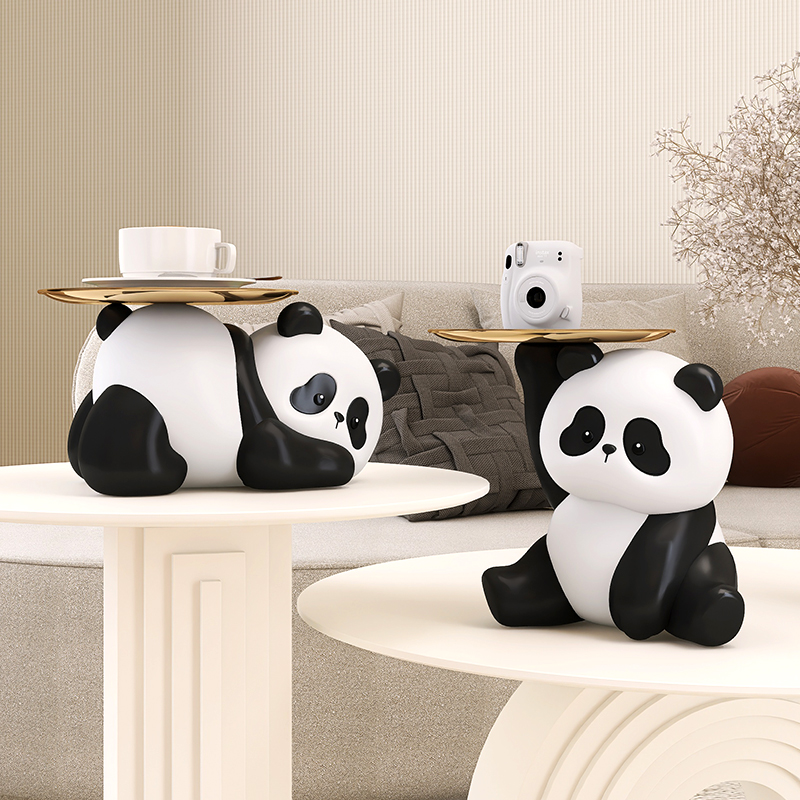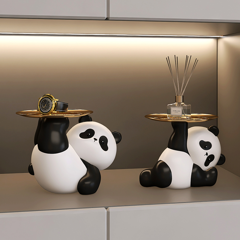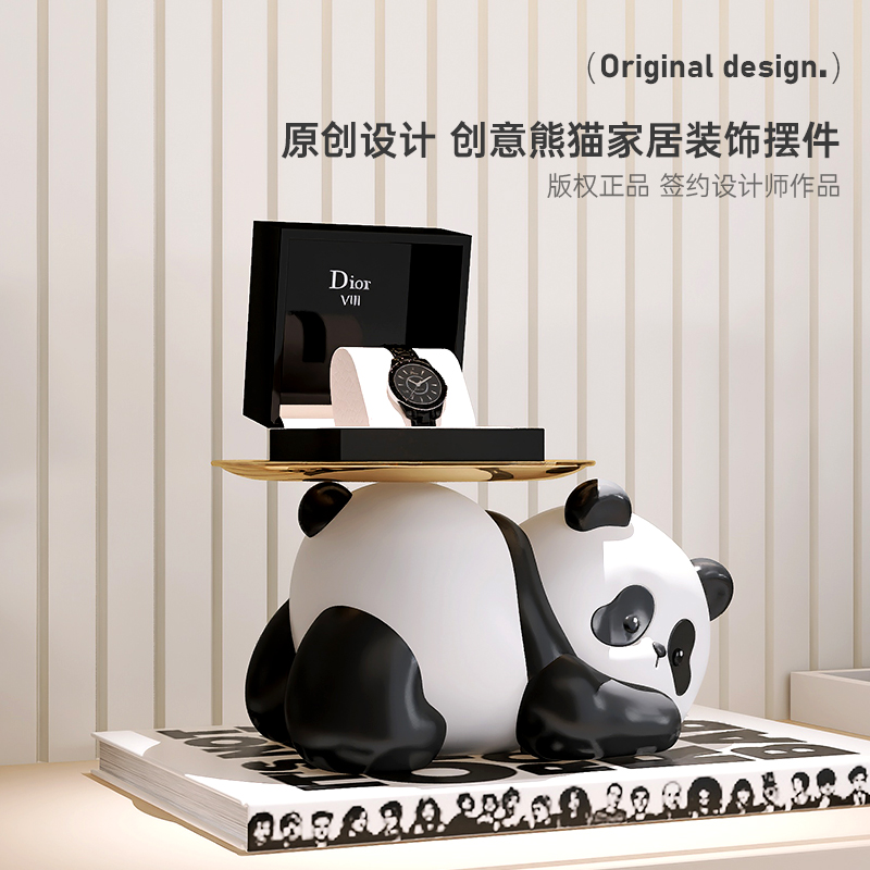 创意熊猫钥匙收纳玄关摆件入户门B口客厅茶几桌面装饰乔迁新居礼