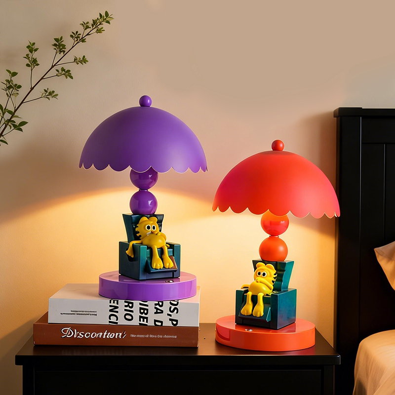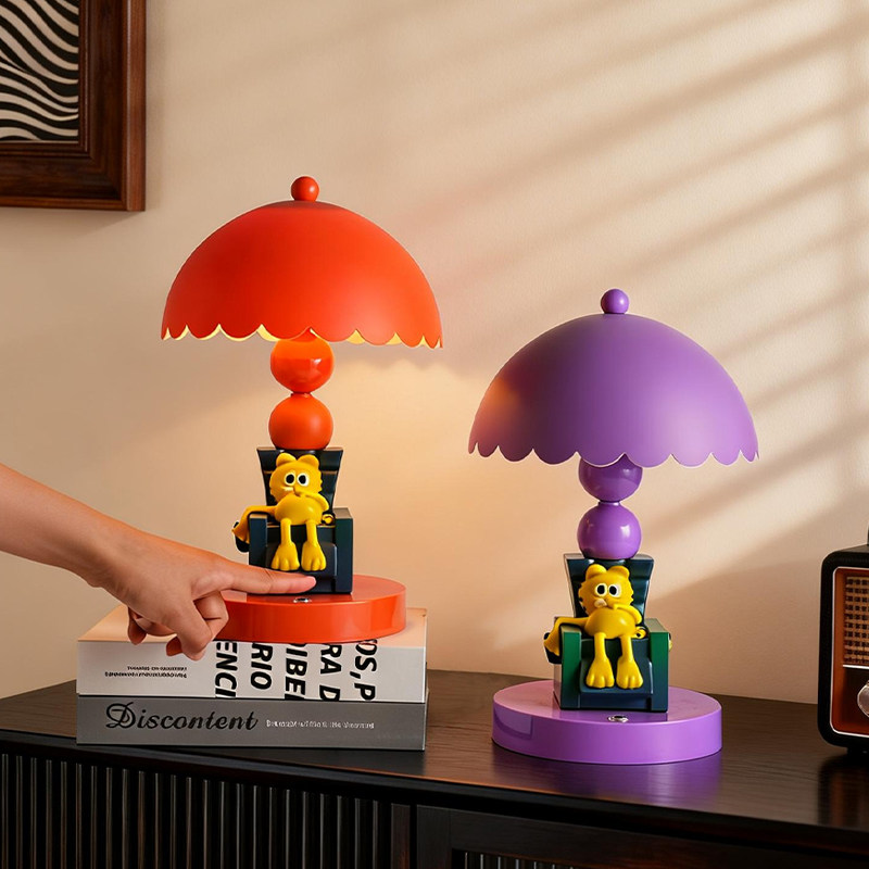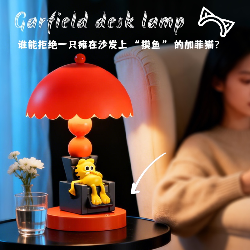 治愈系加菲猫瘫坐台灯三档调光护眼柔光卧室床头氛围感装饰台灯