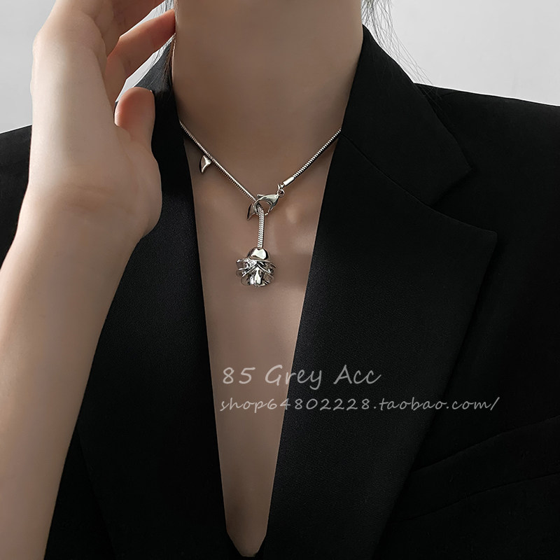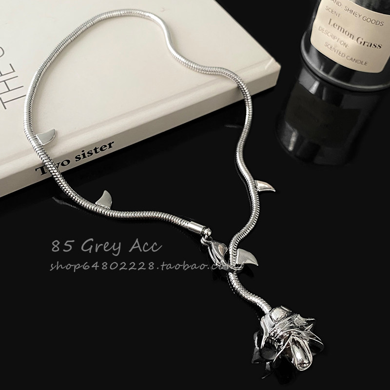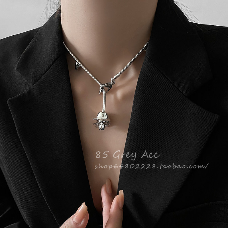 气质金属荆棘玫瑰花项链女小众设计感冷淡风锁骨链个性潮流脖颈链