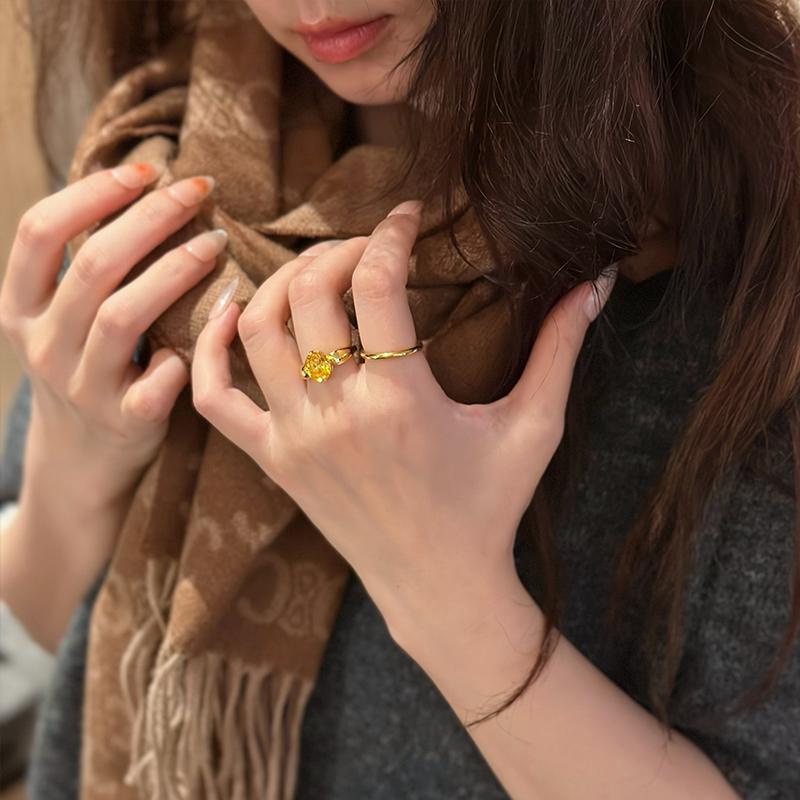 蜜蜂妈手作 2mm金色素圈戒指女简约百搭ins光面叠戴钛钢食指指环