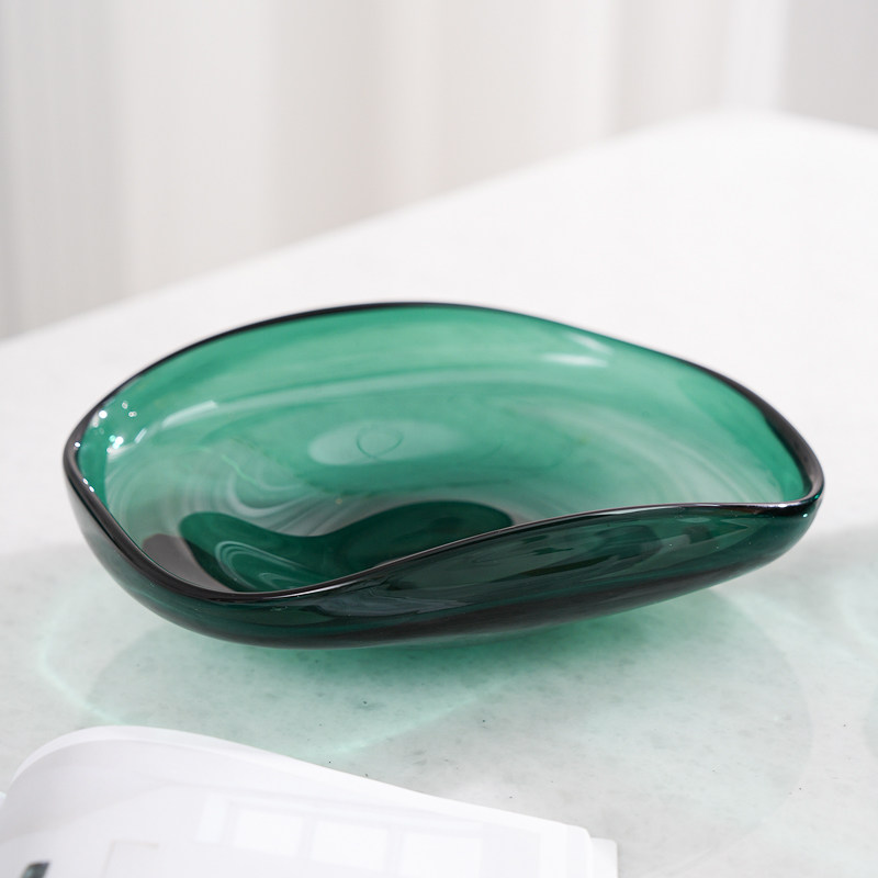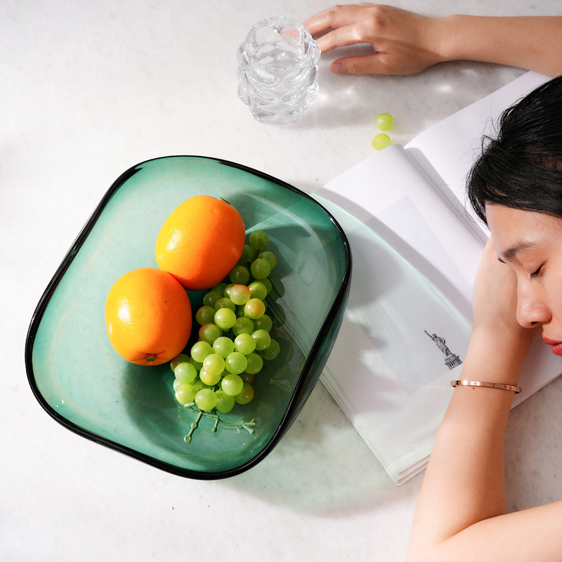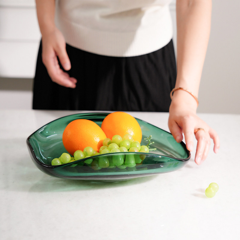锦瑟家居加厚琉璃轻奢果盘墨绿色收纳盘客厅处茶几现代简约摆件