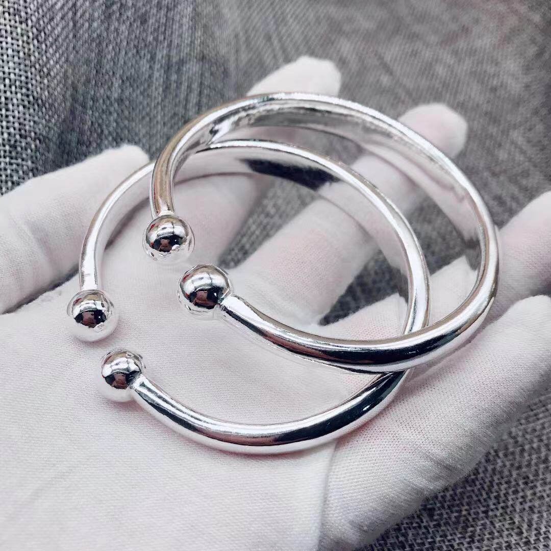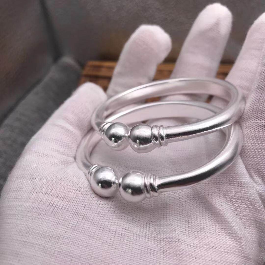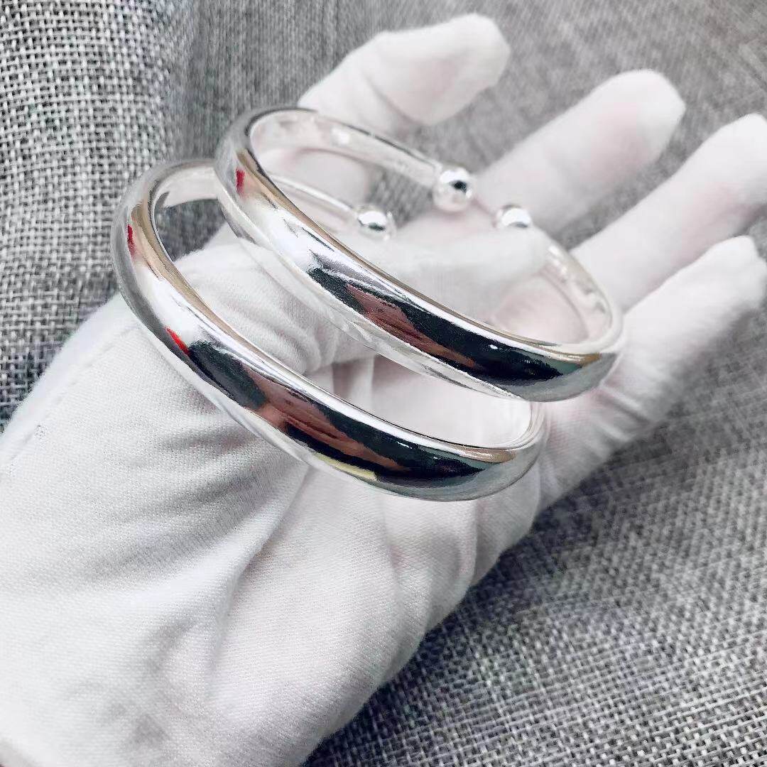银匠手工定制光面一体蒜头足银999纯银手镯纯银男女情侣款