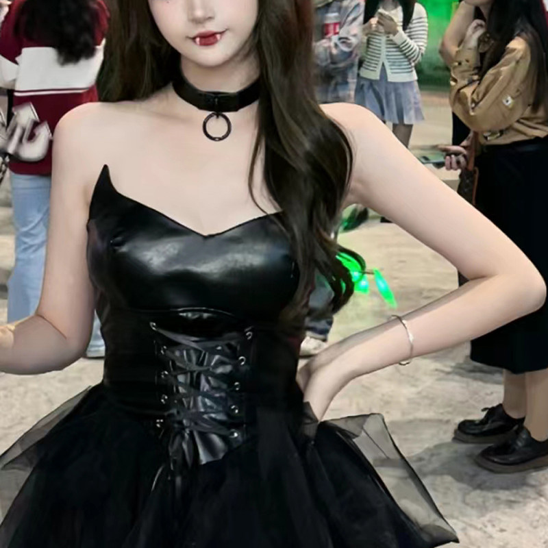 万圣节手作皮质项圈朋克颈带choker风亚文化配饰y2k圆圈吊坠颈链