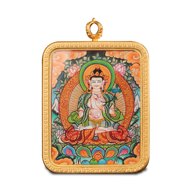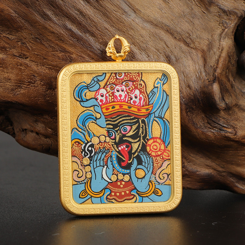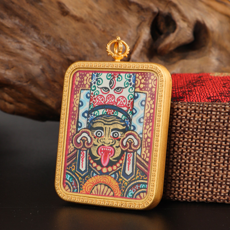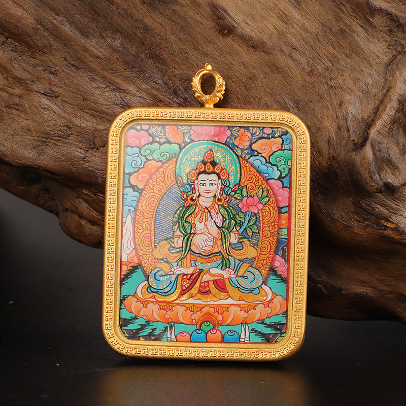纯手绘唐卡吊坠西藏纯铜嘎乌盒饰品绿度母扎基拉姆佛牌护身符项链