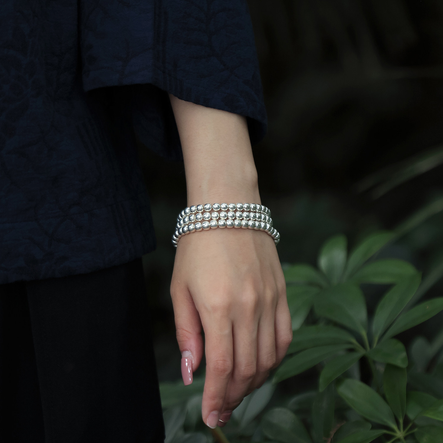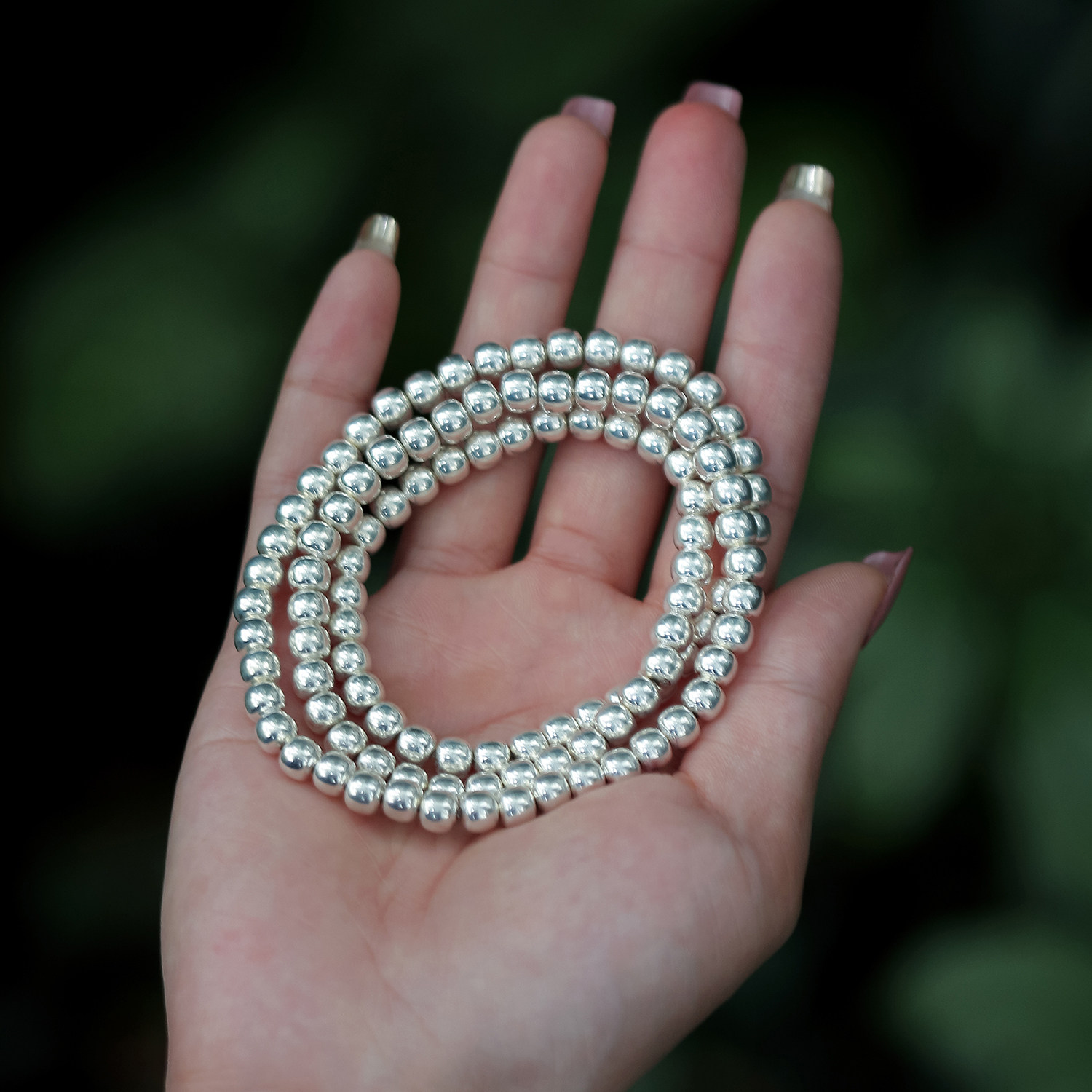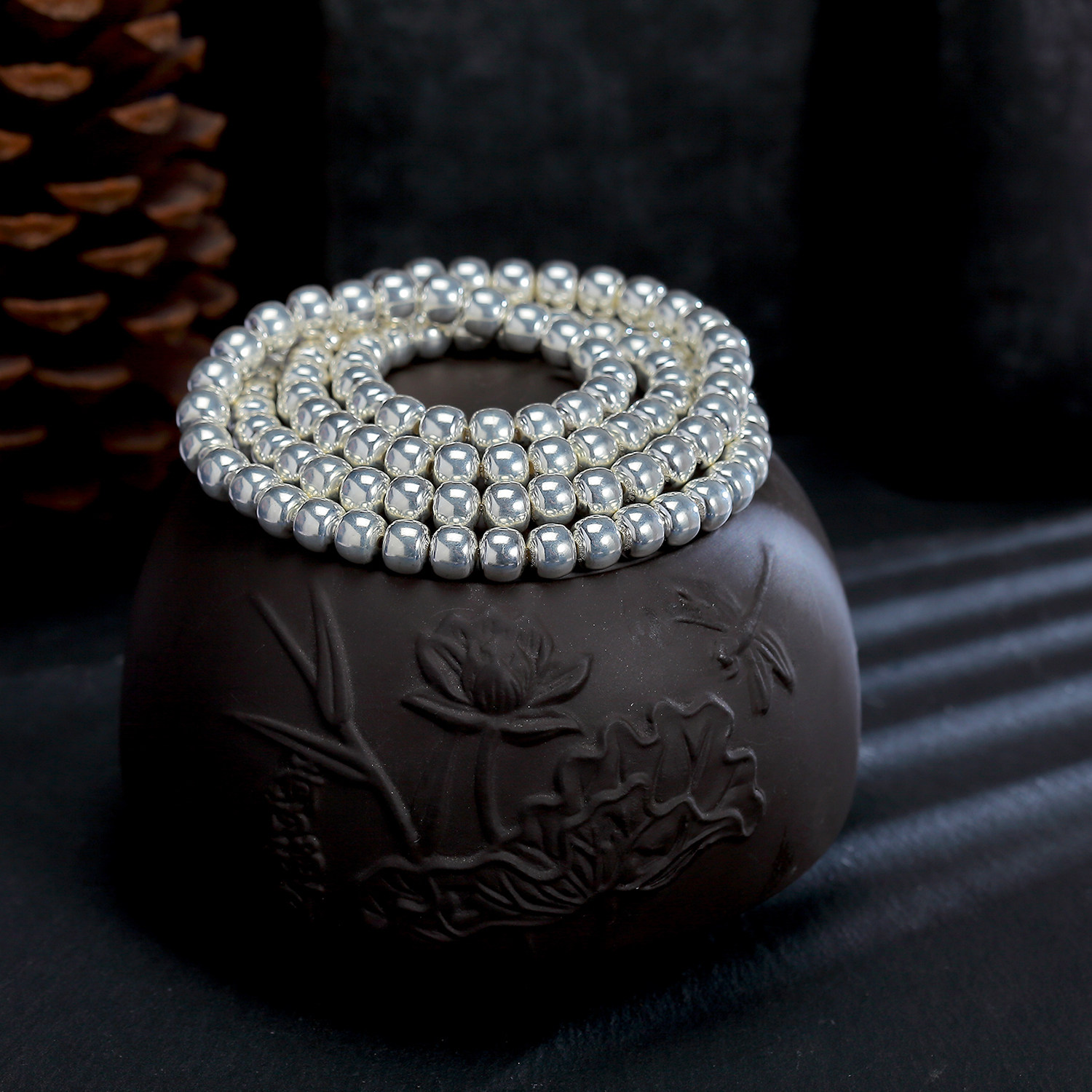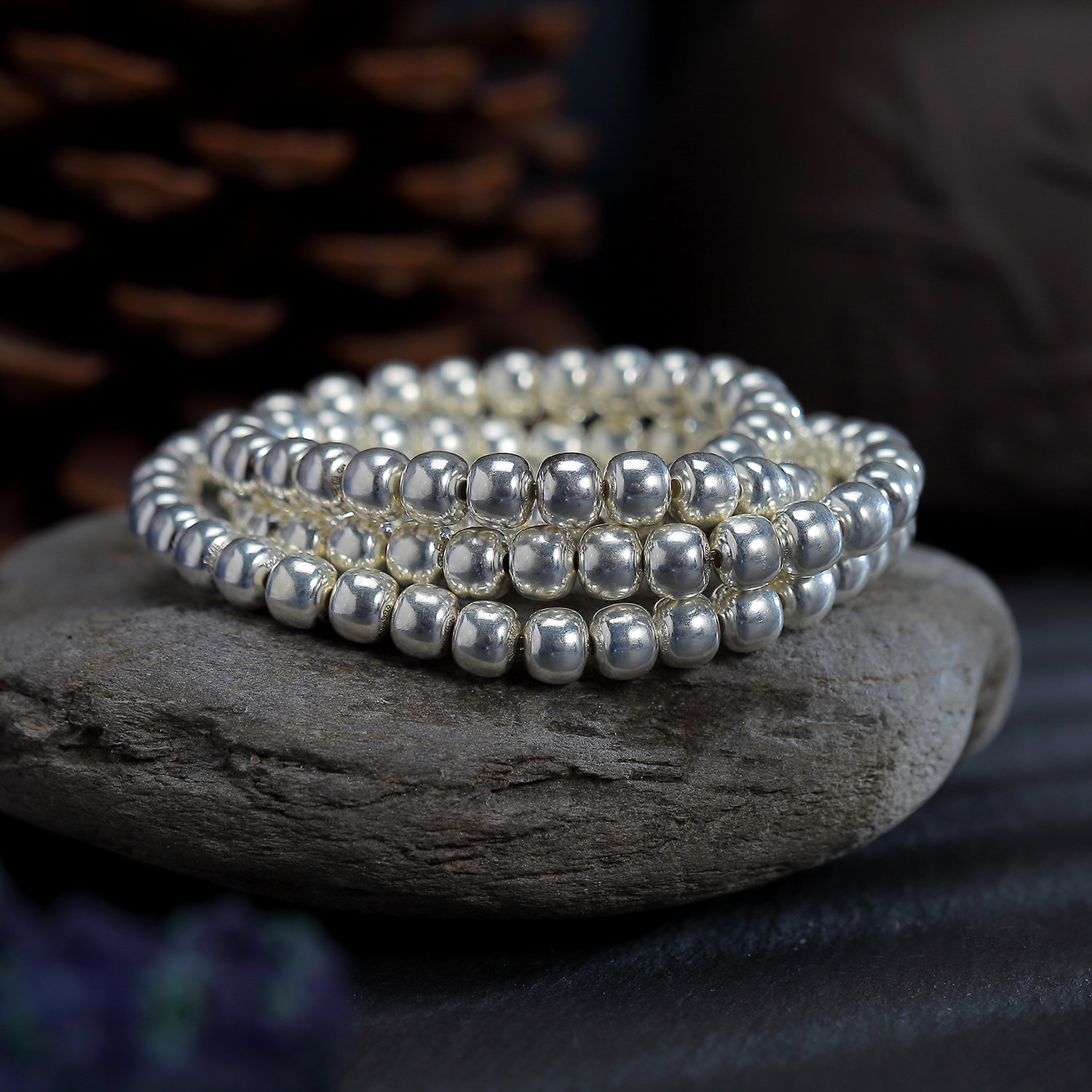 足银999老型108素串实心穿孔盘玩男女佛链弹力绳项链