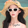 2026新款猫眼白色墨镜女款高级感方圆脸显瘦海边度假遮阳太阳眼镜