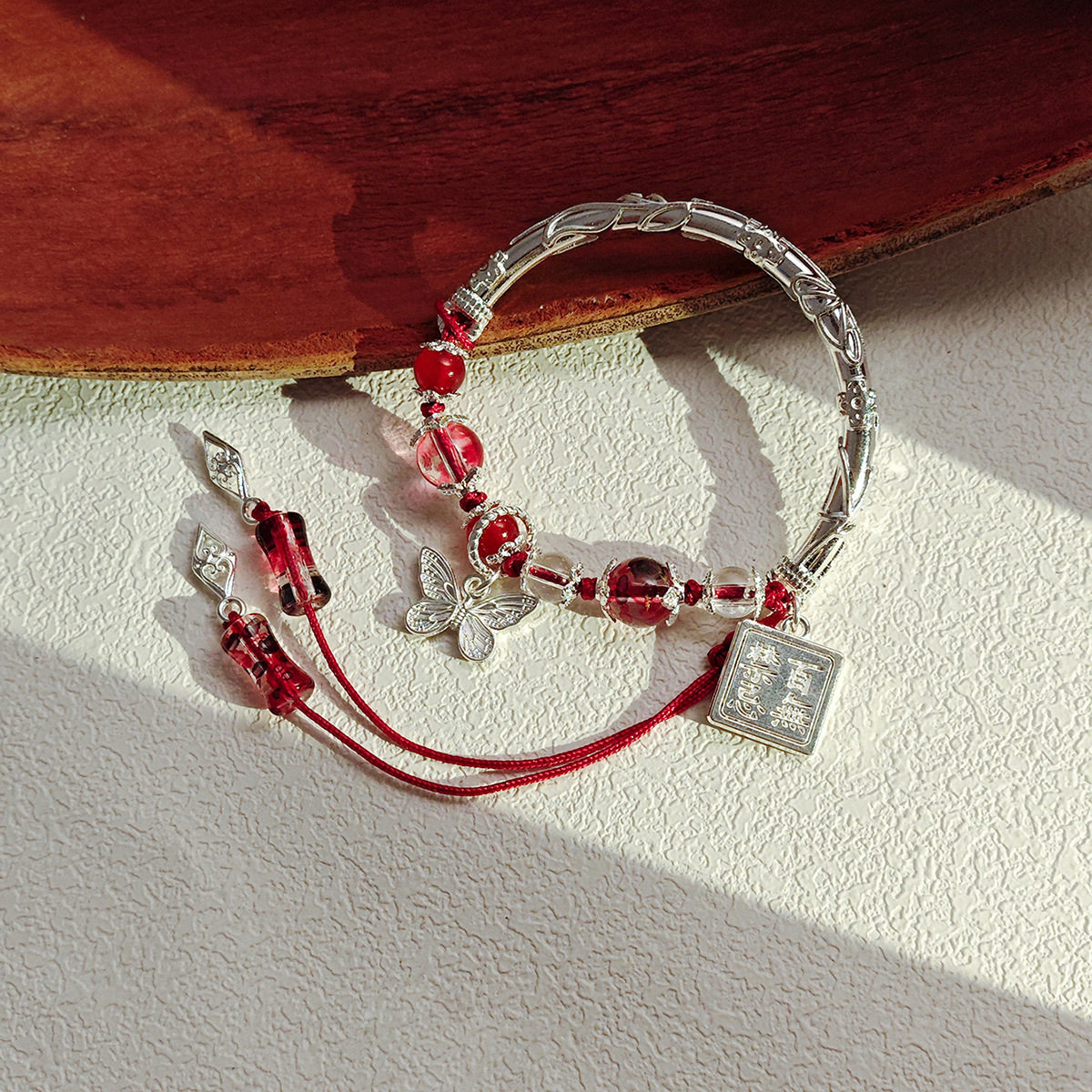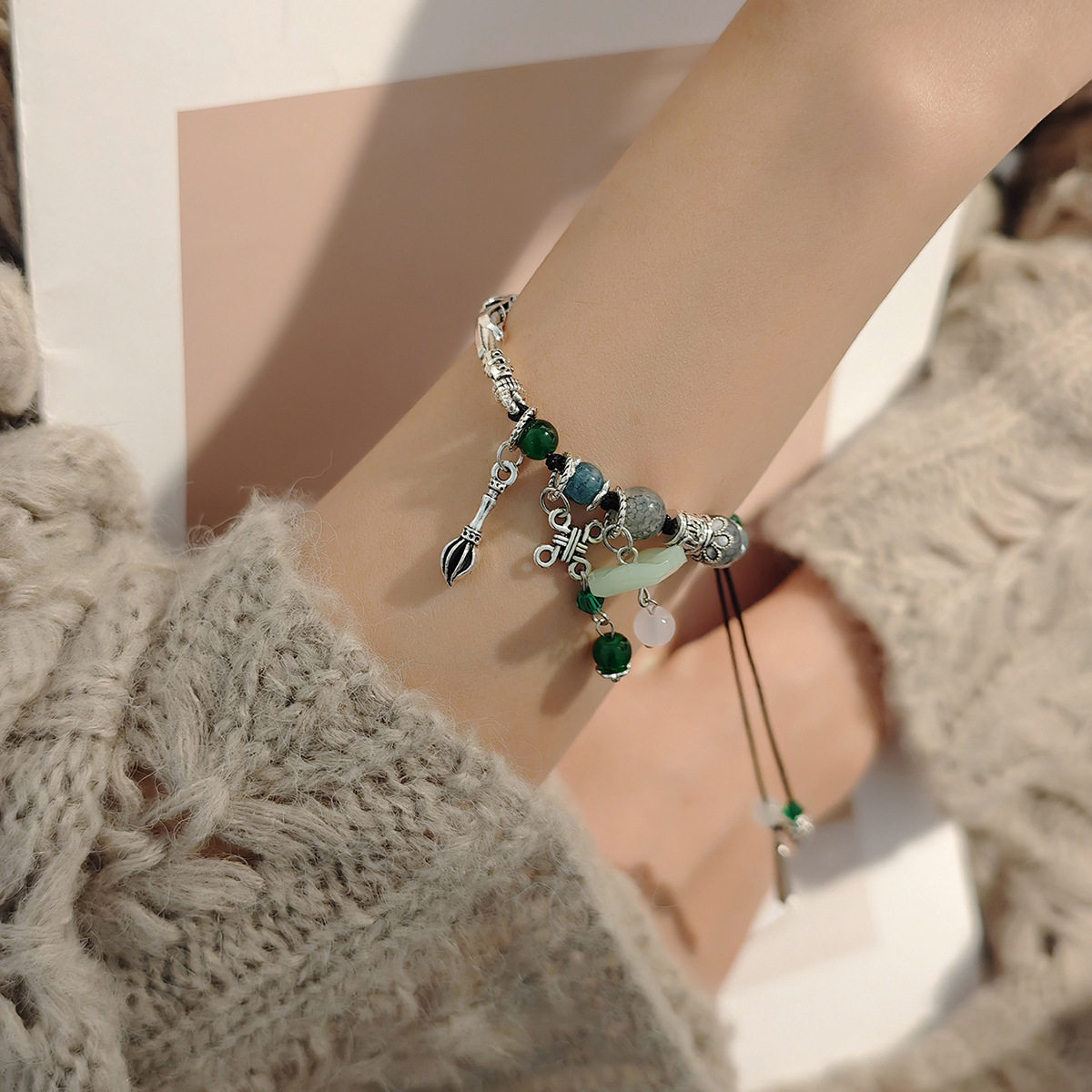 新中式古风绿色竹节莲花串珠手链女生琉璃手链清冷风半镯手饰学生