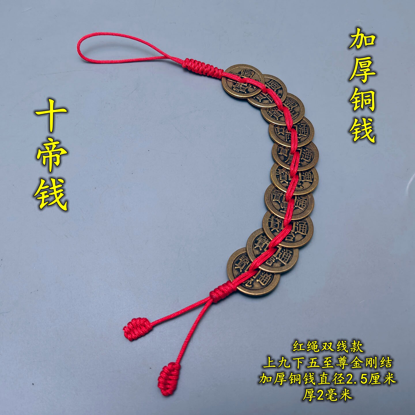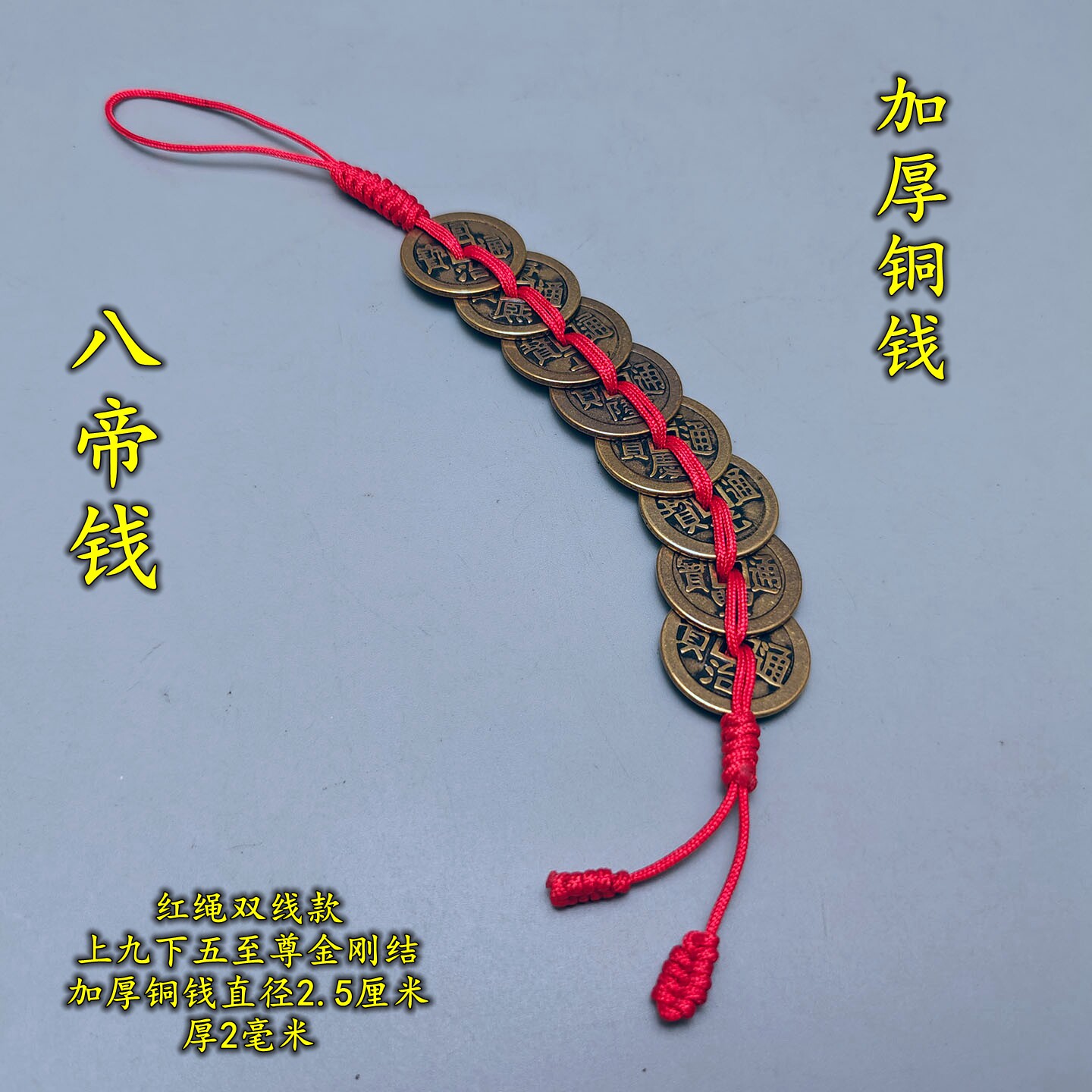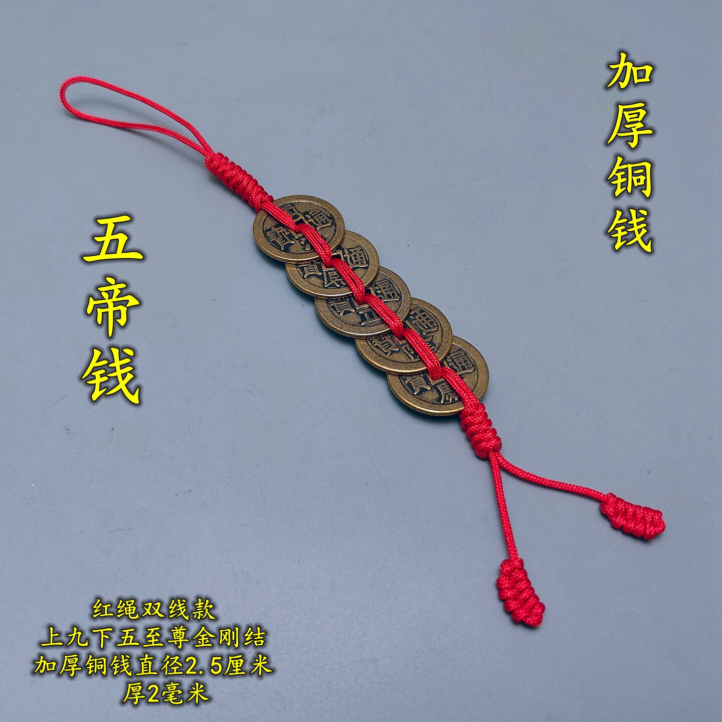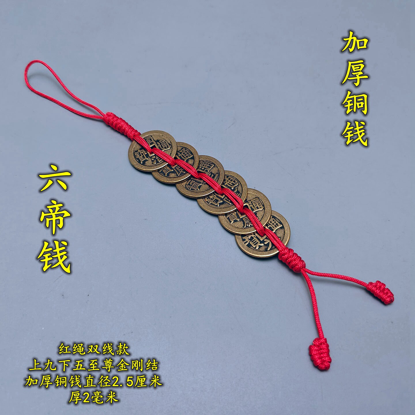 红色线绳纯铜加厚五帝六帝钱七八九十帝钱实心开口葫芦门对门挂件