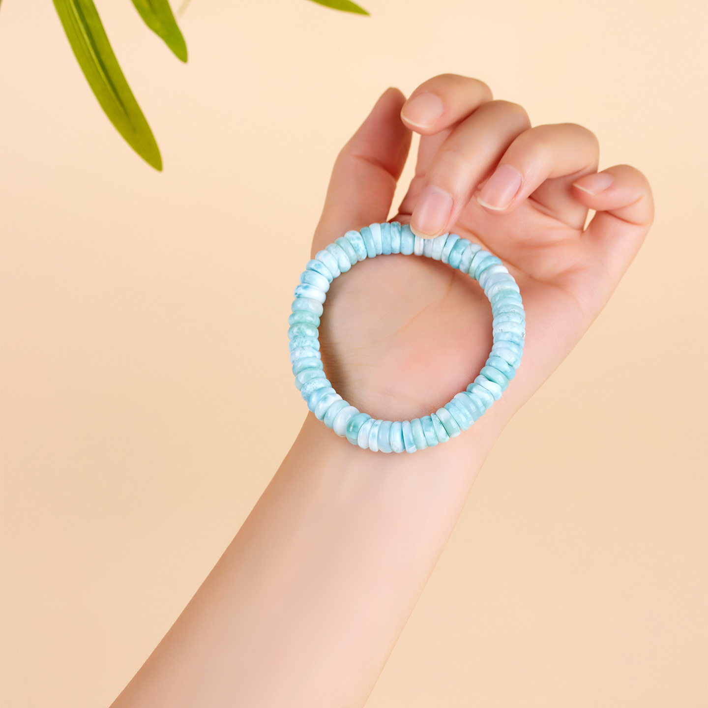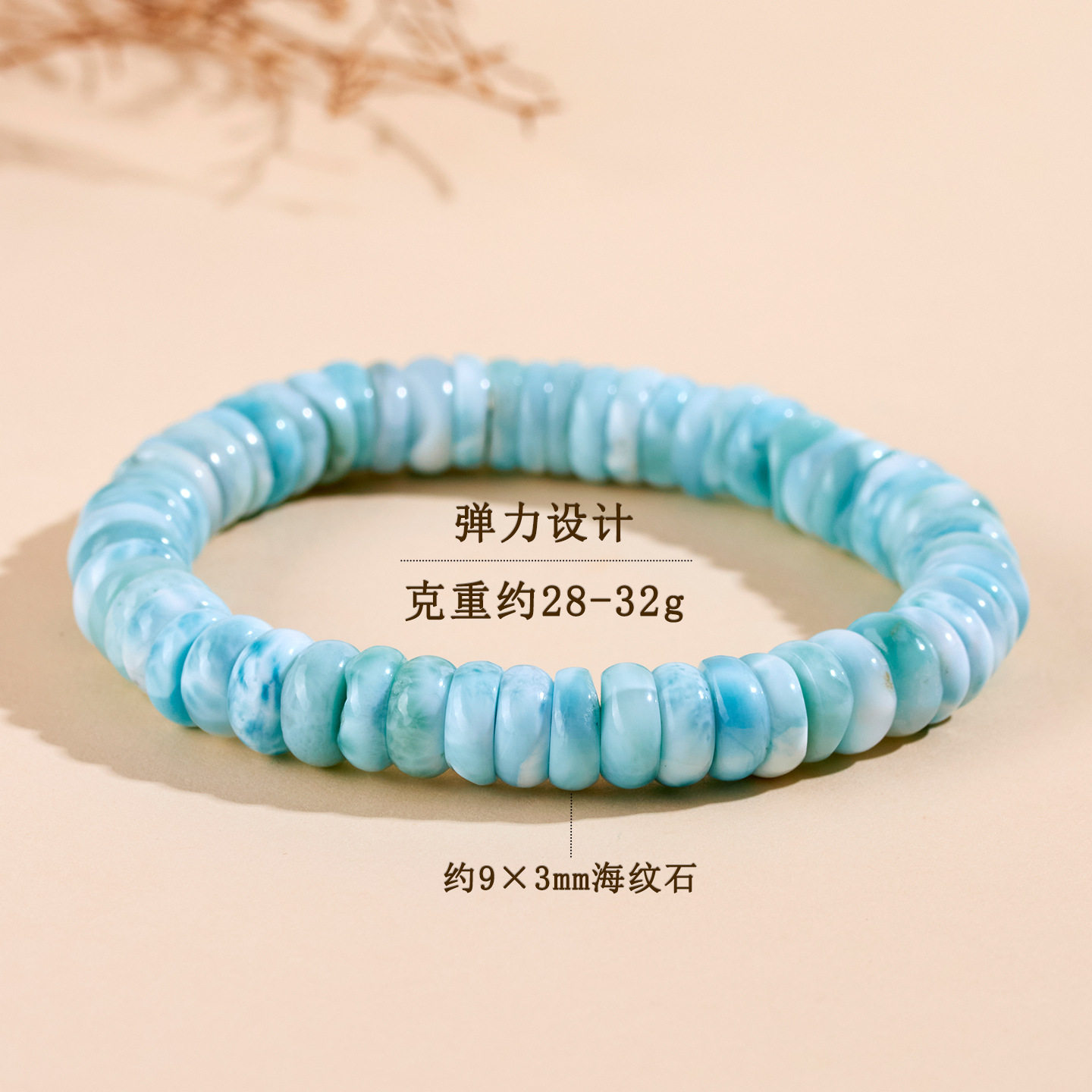 新款天然海纹石算盘珠单圈手链淡蓝色隔片时尚清新景区爆款女手串