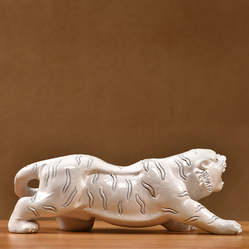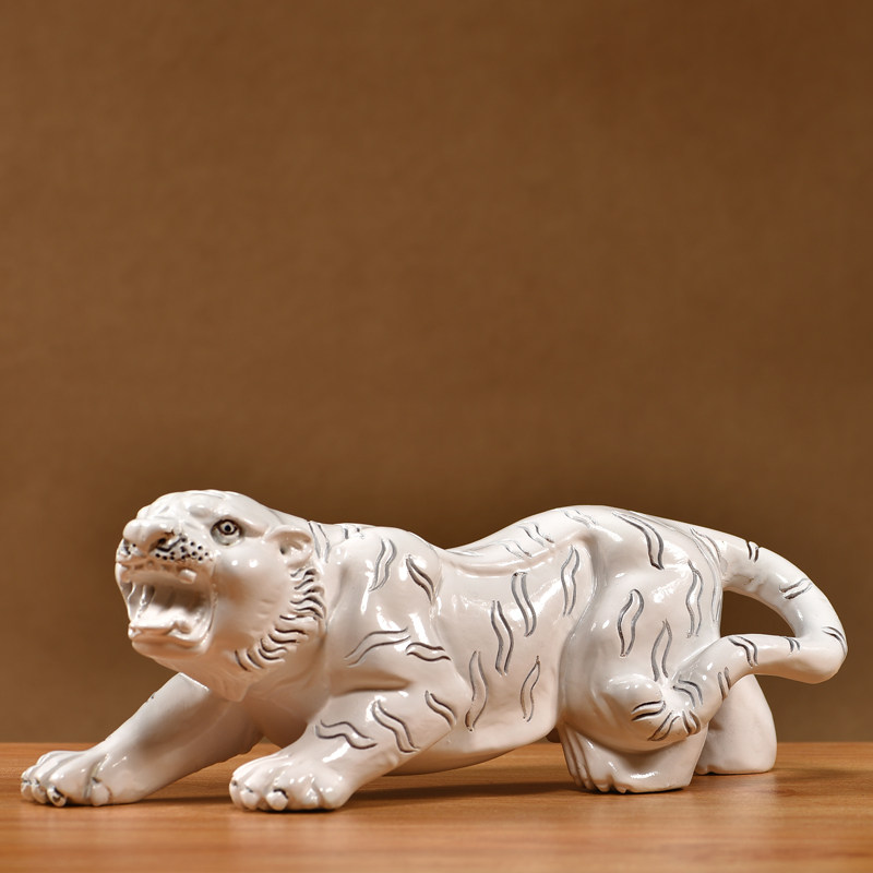 白色实木老虎摆件新中式十二生肖上山虎办公室客桌面厅装饰工艺品