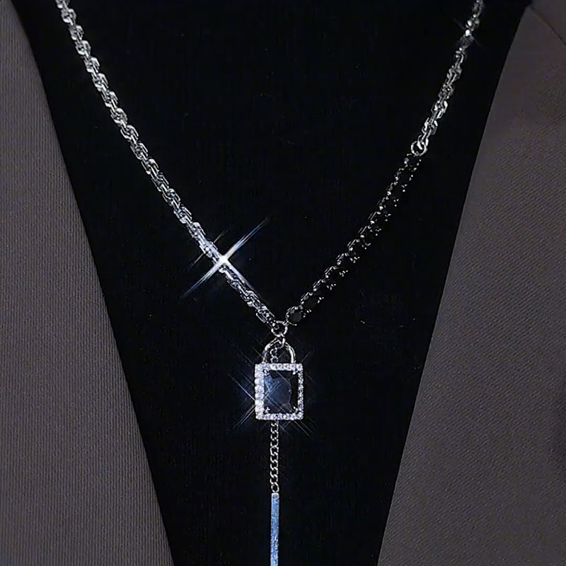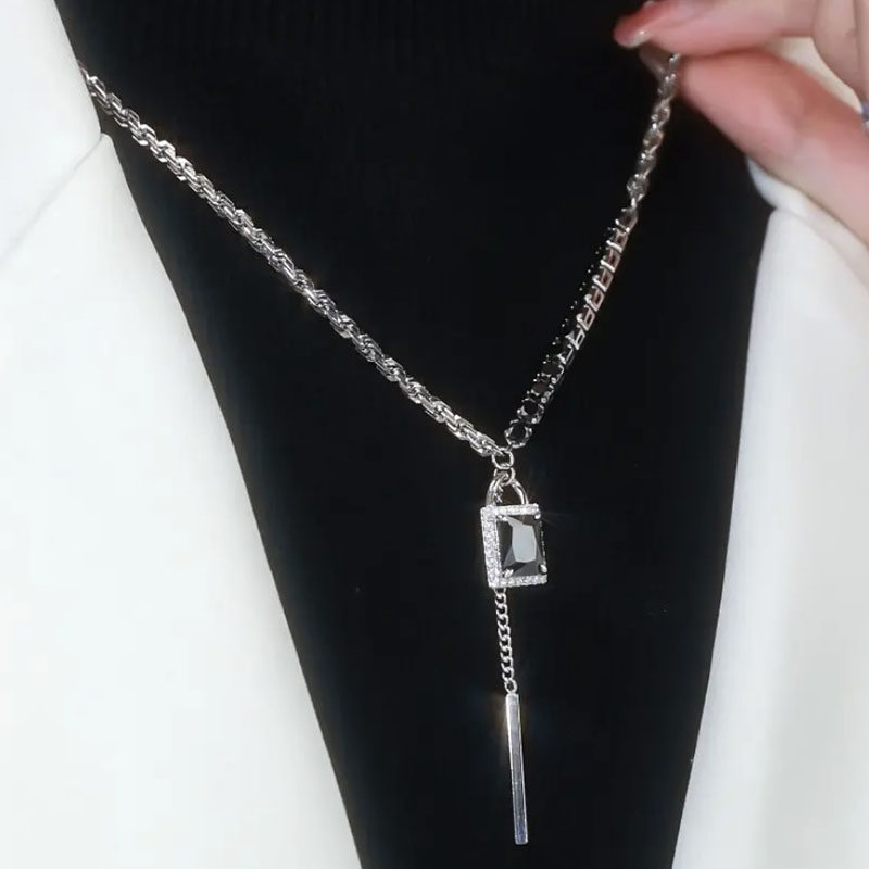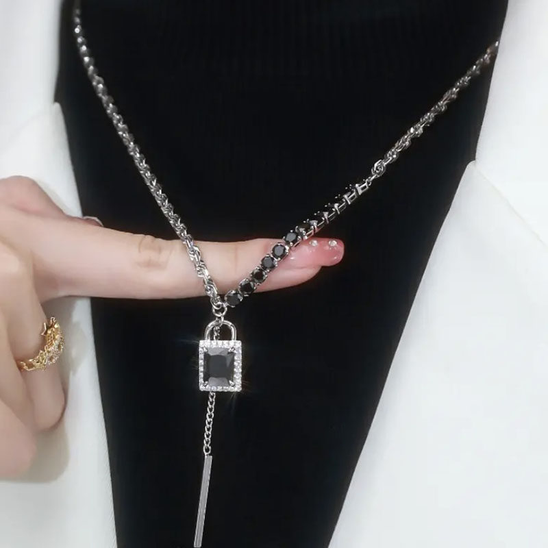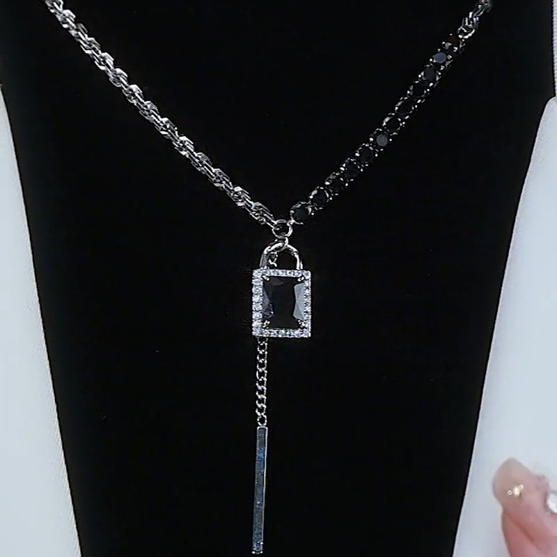 黑色水晶锁吊坠项链2022年新款潮气质轻奢高级感锆石毛衣链饰品女