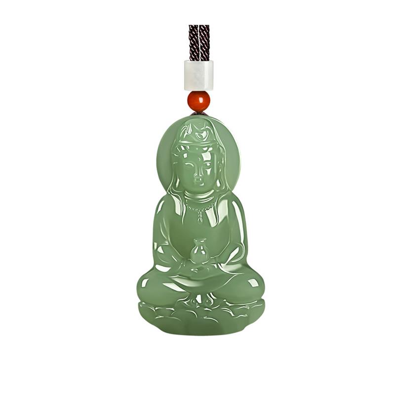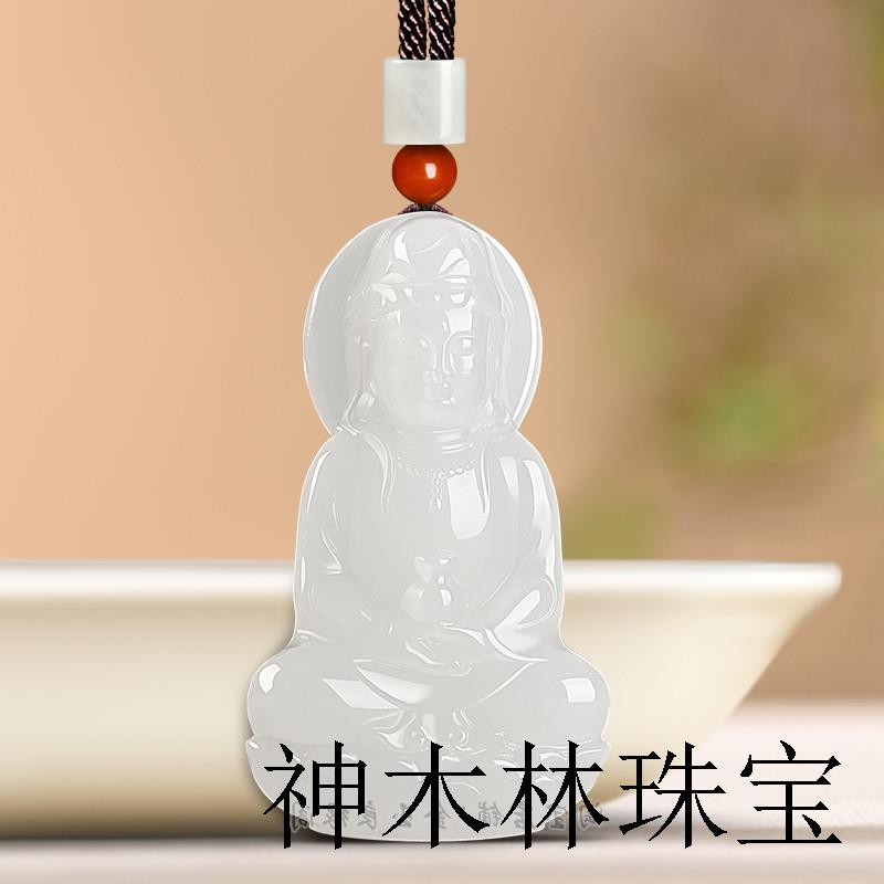 新疆和田玉青玉净瓶观音吊坠玉佩羊脂白玉观音菩萨挂件玉牌项链送