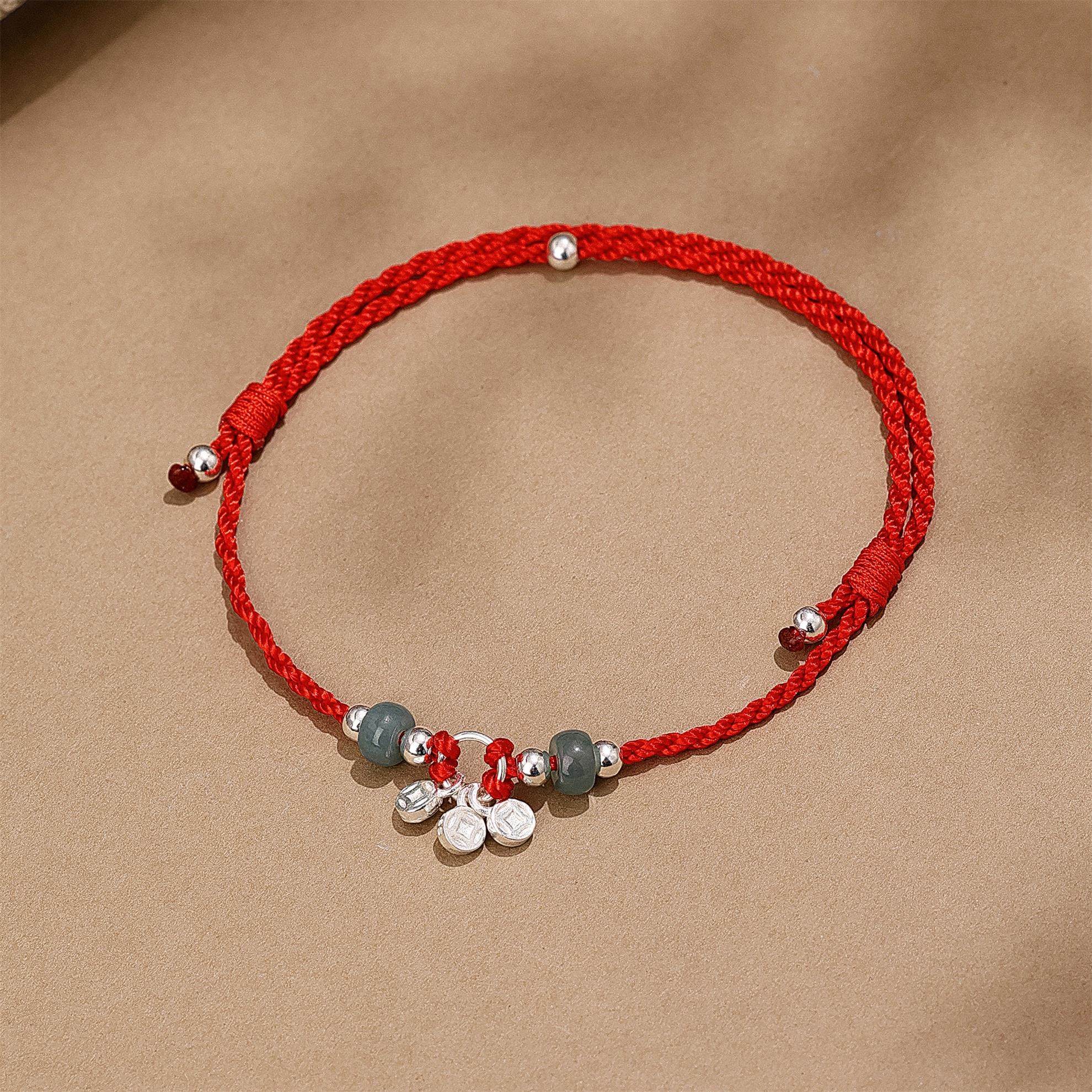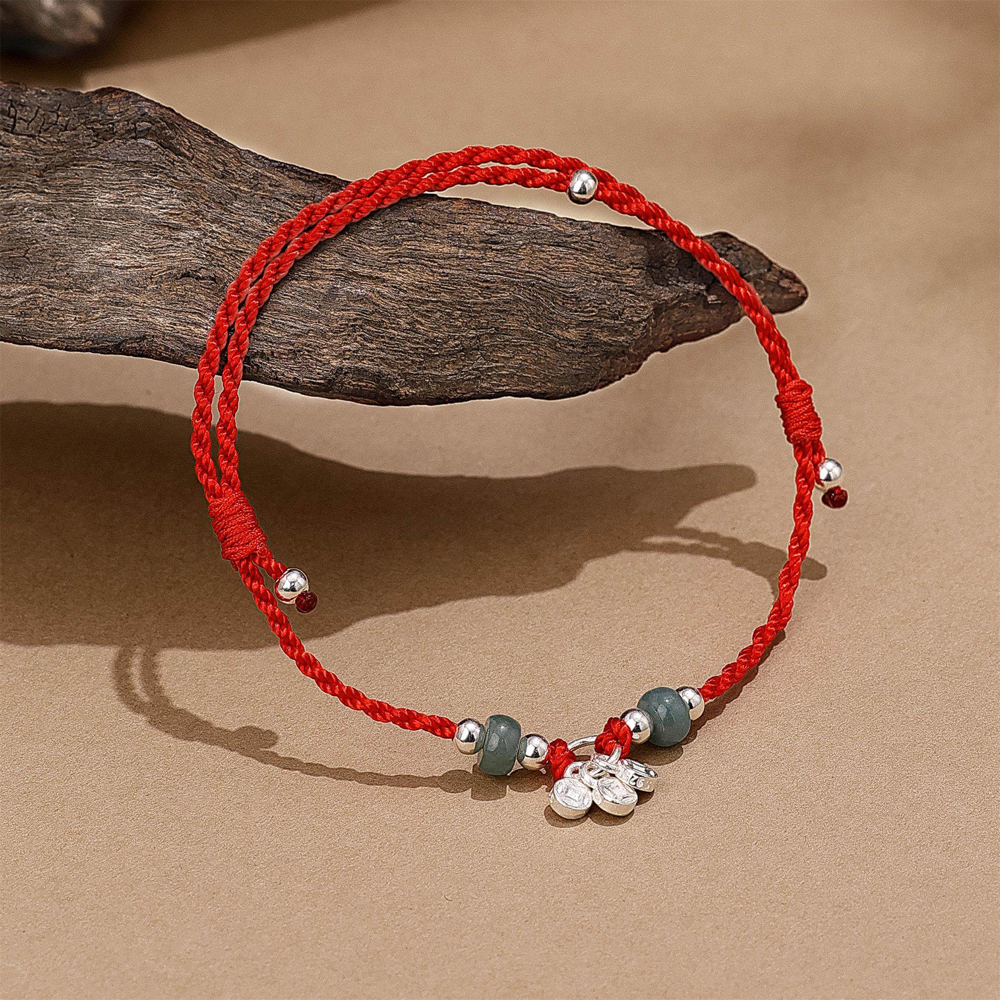 钱如意S925银吊坠红绳蓝水翡翠手绳本命年手链手串手环新年配饰女