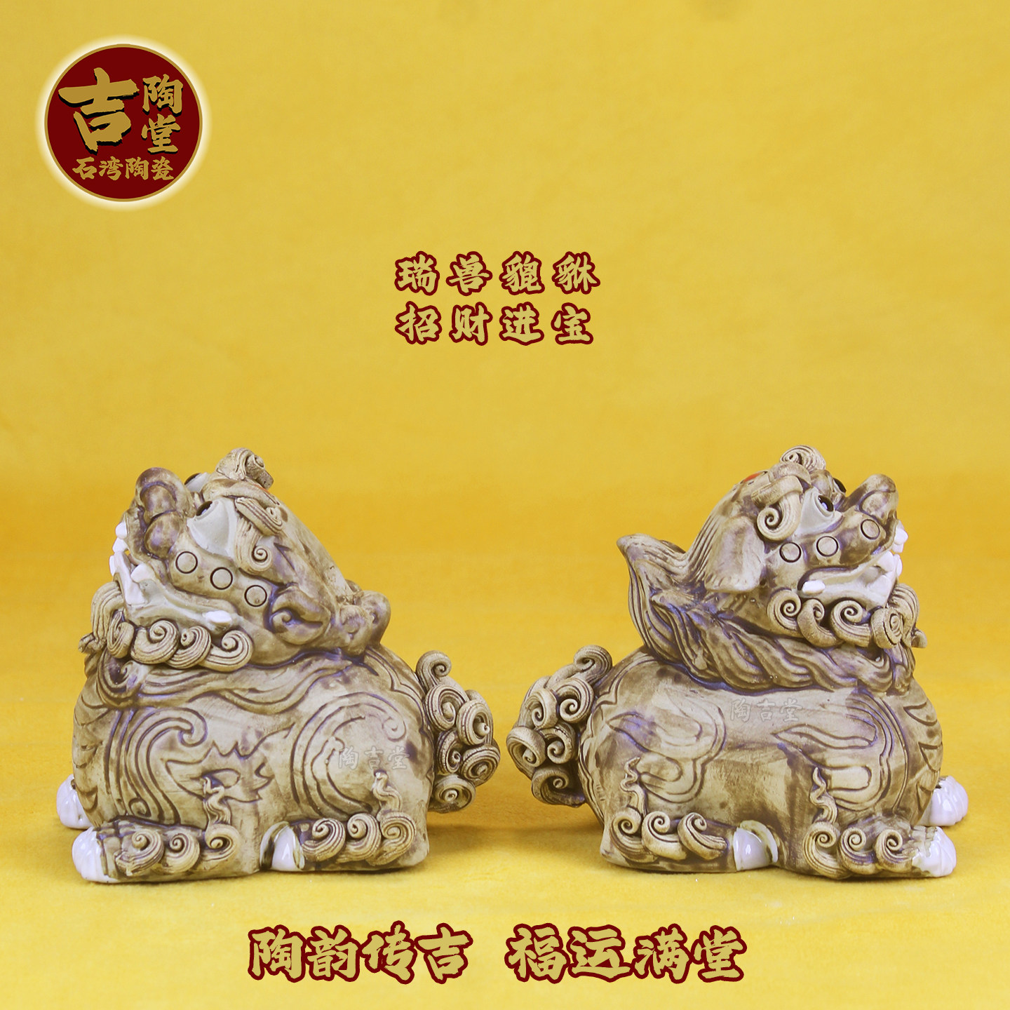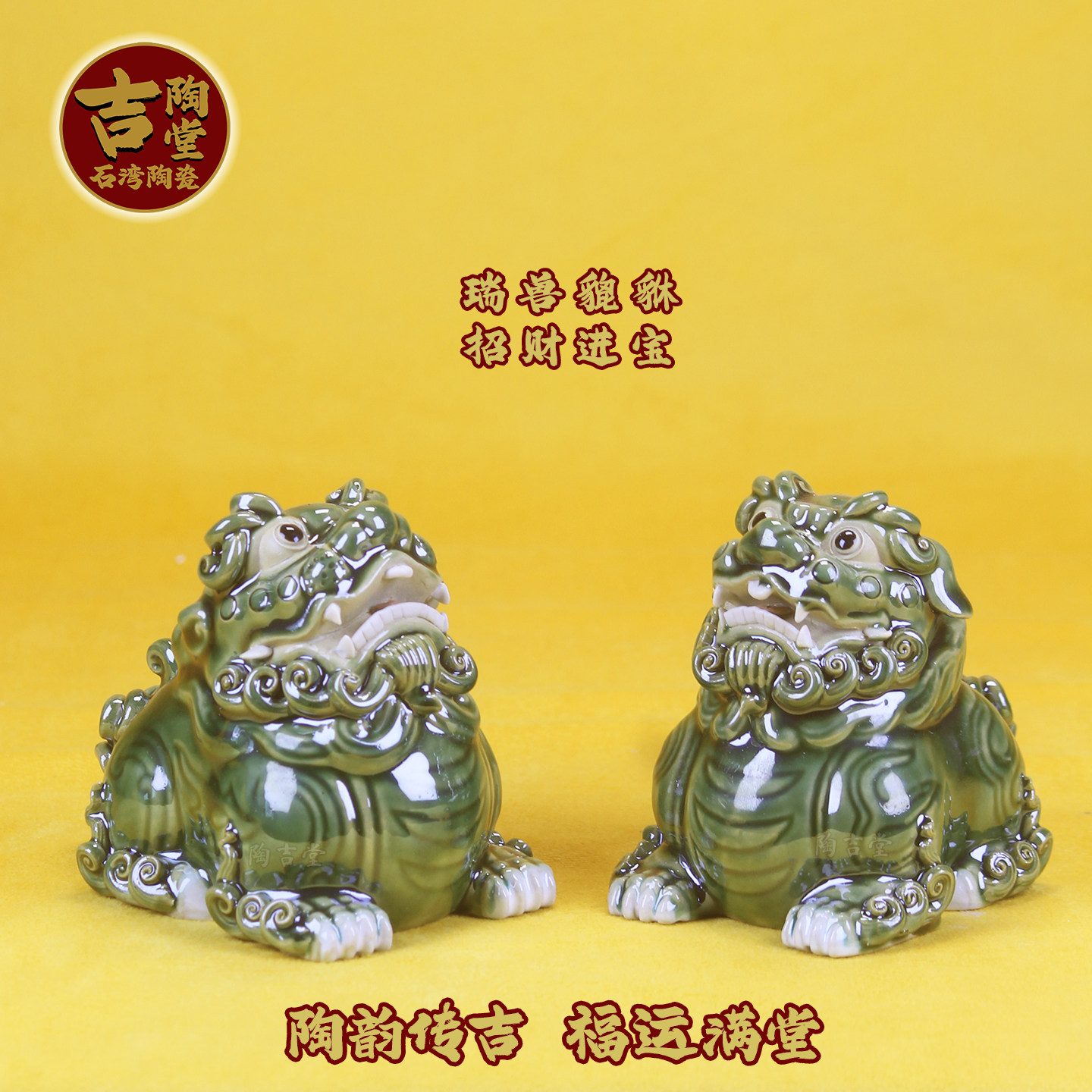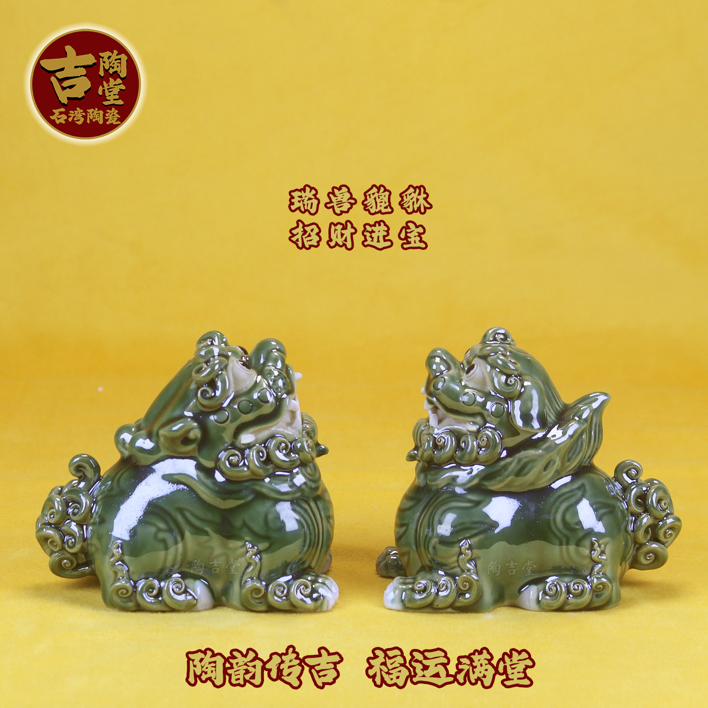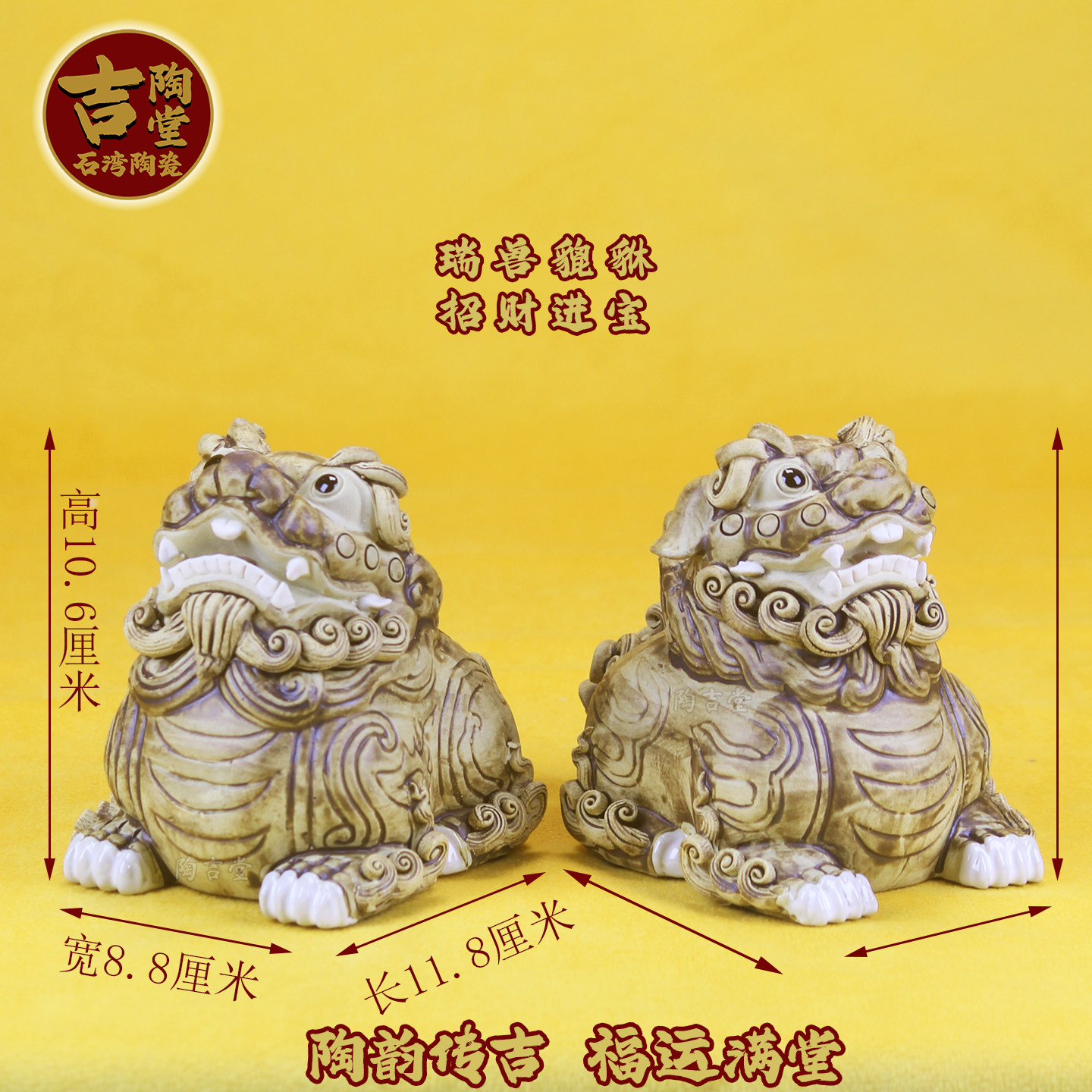 石湾公仔陶瓷貔貅摆件一对公母皮丘招财旺宅新居玄关办公桌面装饰