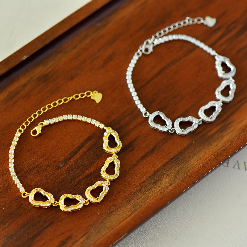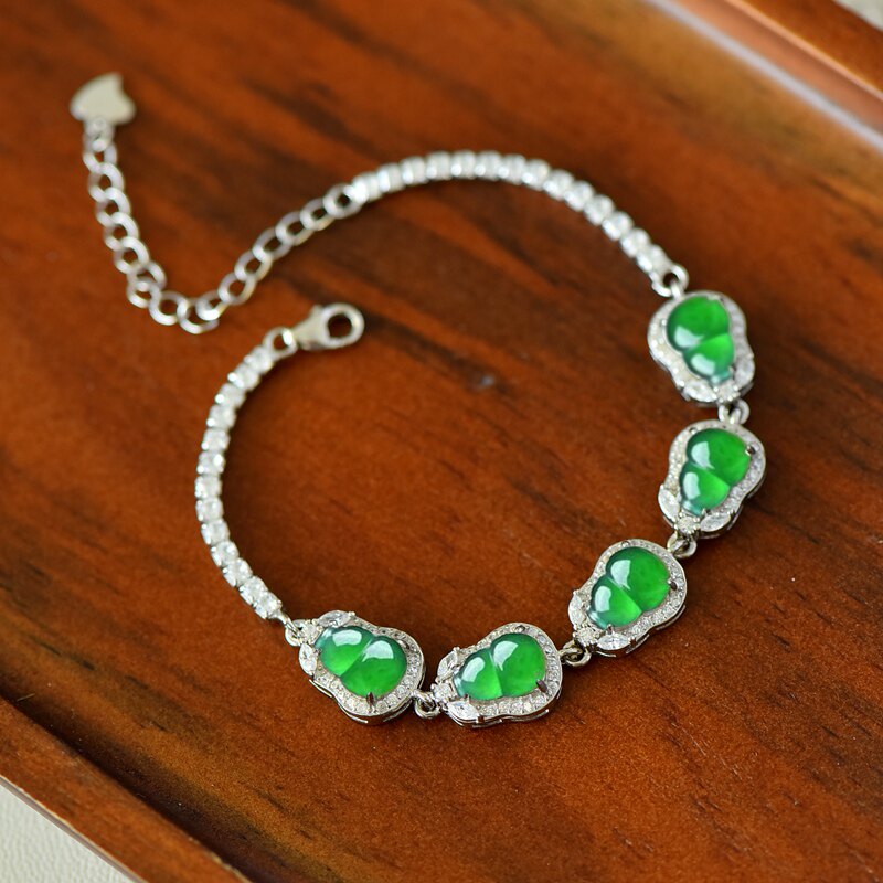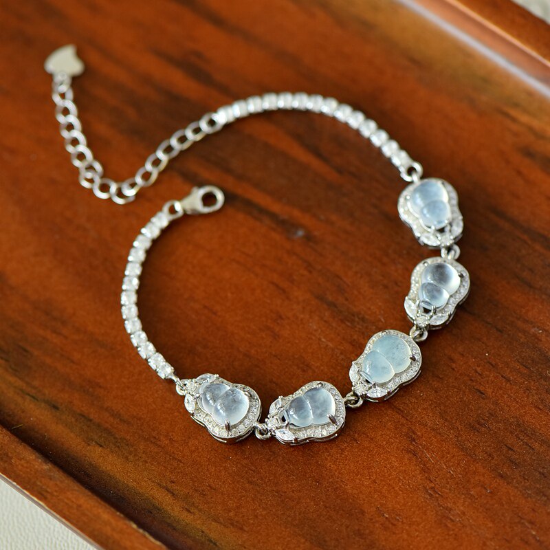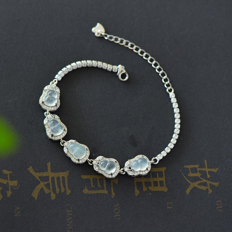 S925纯银手链空托女款四爪葫芦5*76*87*9mmDIY松石玉石翡翠镶嵌托