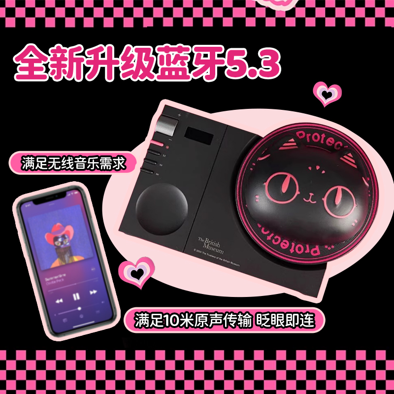 大英博物馆蓝牙音响文创礼品桌面时钟萌猫音响女生闺蜜生日礼物