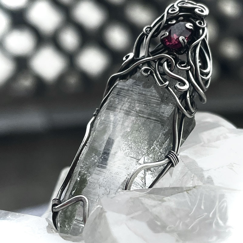 玄素Astr手工流线吊坠大鱼白绕丝系列天然喜马拉雅白水晶原石项链
