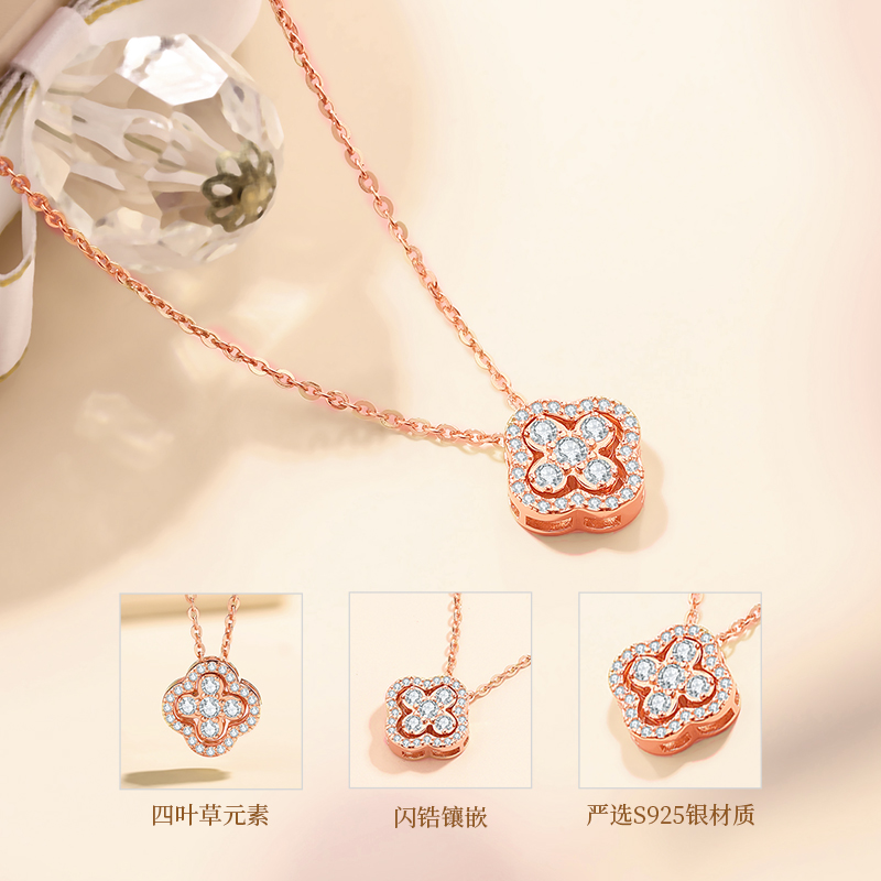 DEZA戴娅 幸运草项链女925银四叶草套链送女友送闺蜜满钻镶锆礼物