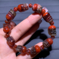 天然橙色草莓晶三圈手链老矿嫩色桃花粉晶水晶手串饰品礼物情侣女