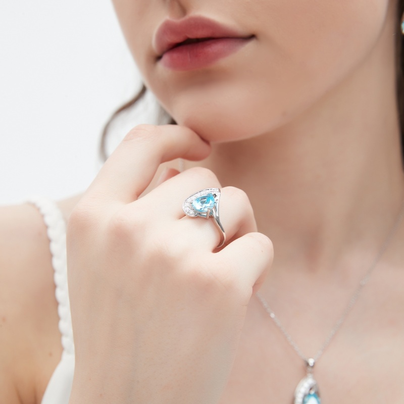 圣玛利亚海蓝宝戒指轻著小众高级感原创设计新款