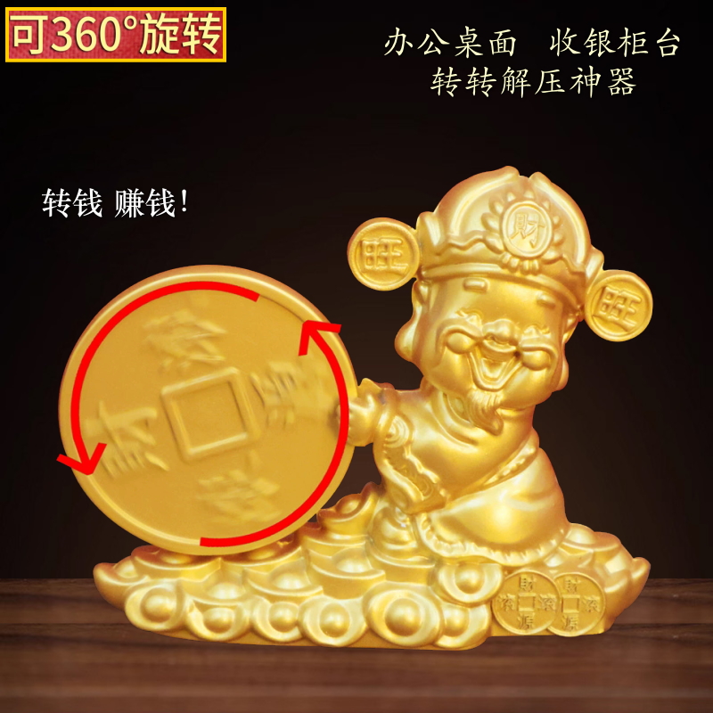 财源滚滚财神爷转转小摆件招财进宝办公桌收银台书房桌面装饰礼品