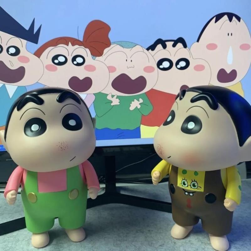 穿背带裤小新雀斑蜡笔手办礼物卡通公仔车载可爱桌面潮玩摆件装饰