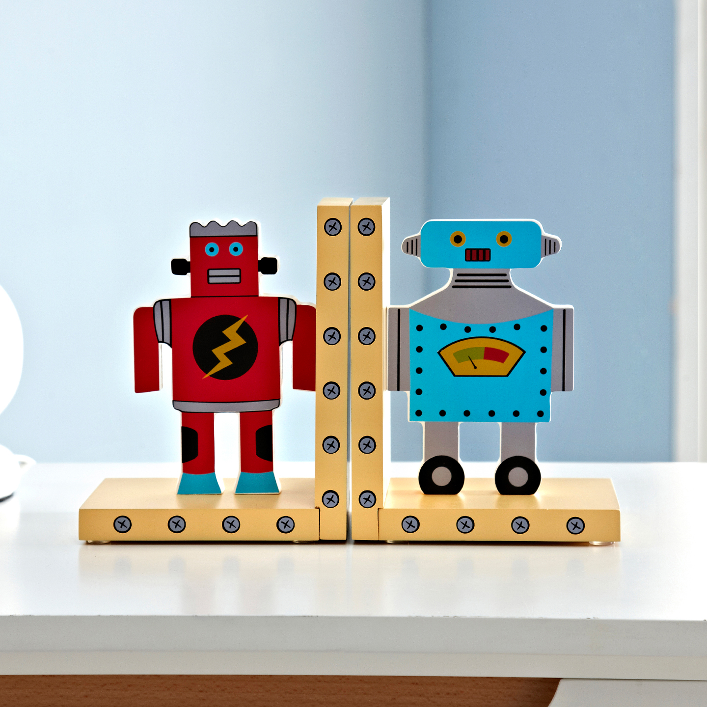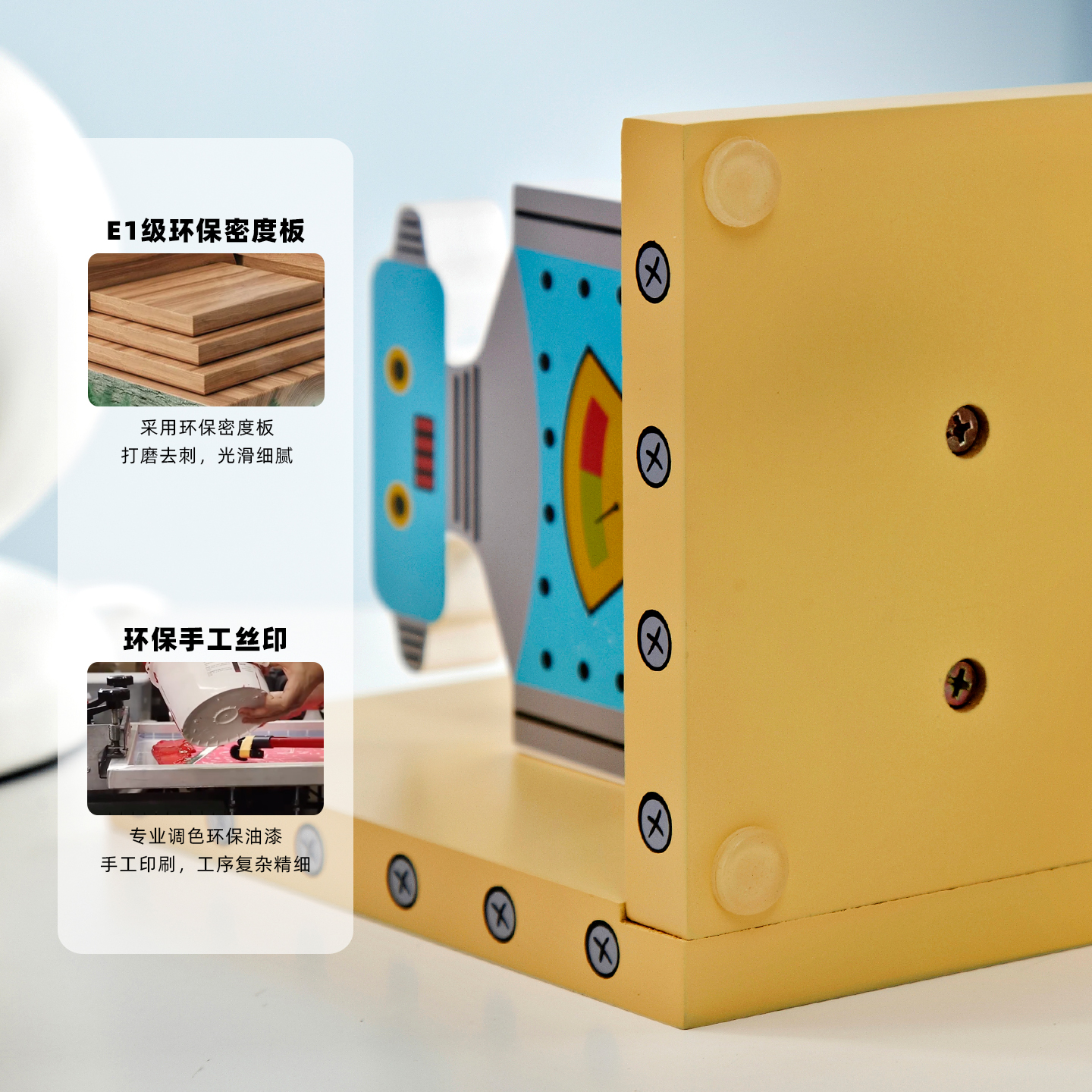 儿童房装饰摆件软装样板间书立架木质机器人桌面男孩房间收纳书档