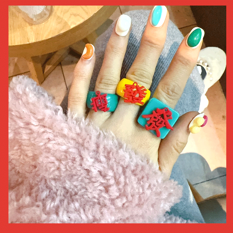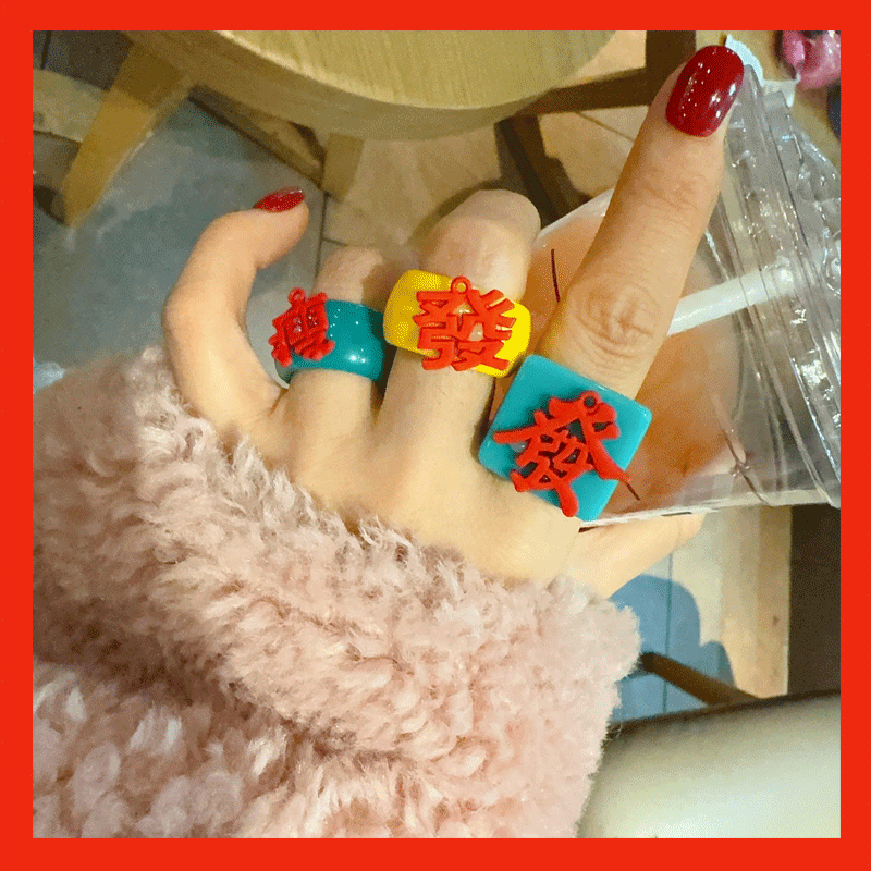 新年红色新年款戒指中国风女高级设计感红中发财轻奢新年喜庆指环