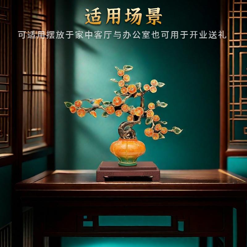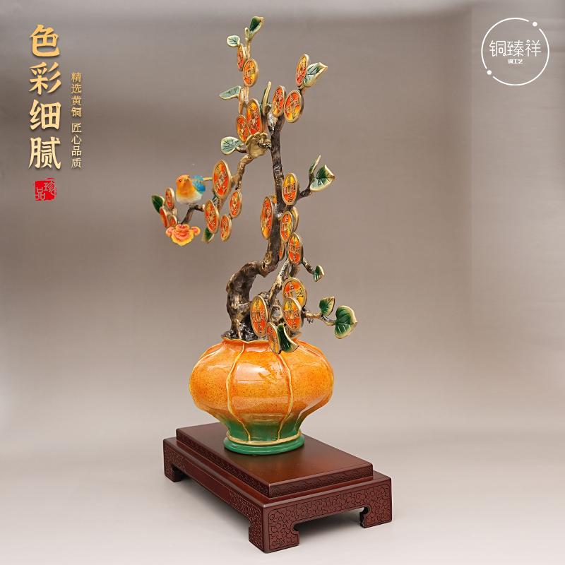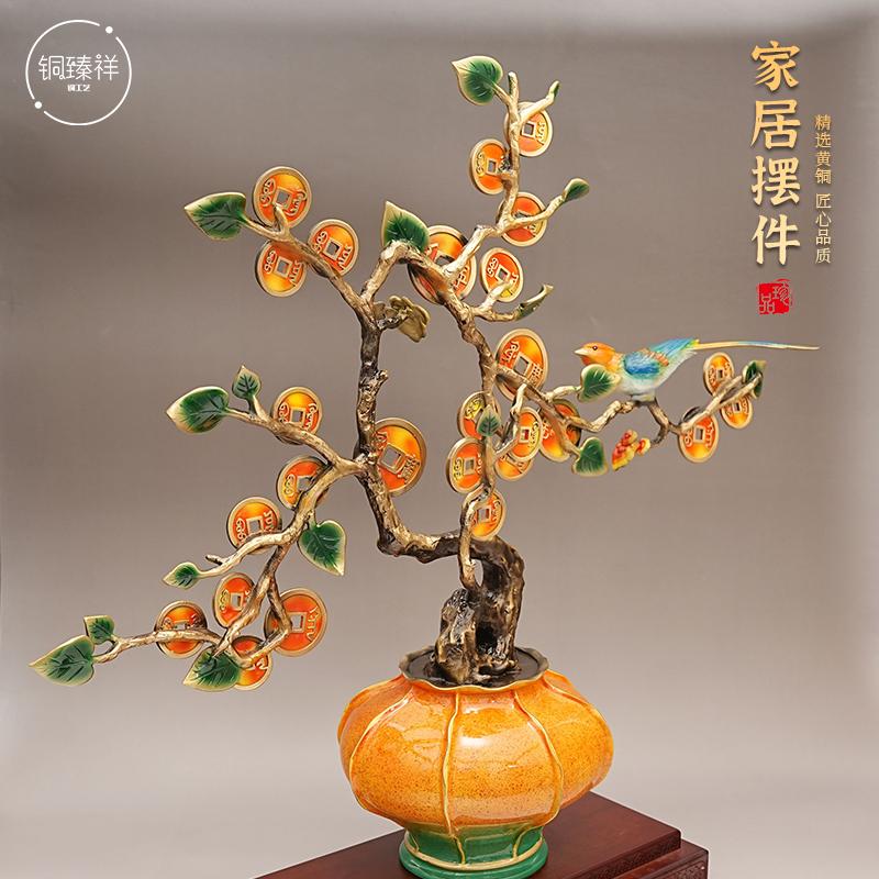 四季发财树摆件黄铜摇钱树客厅玄关装饰品乔迁新中式高档开业礼品