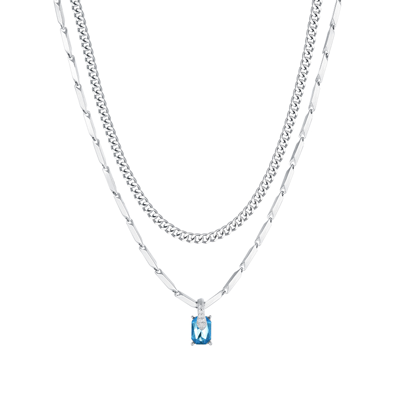 秦霄贤同款双层叠戴蓝色锆石项链女小众颈链轻奢高级感挂脖配饰男