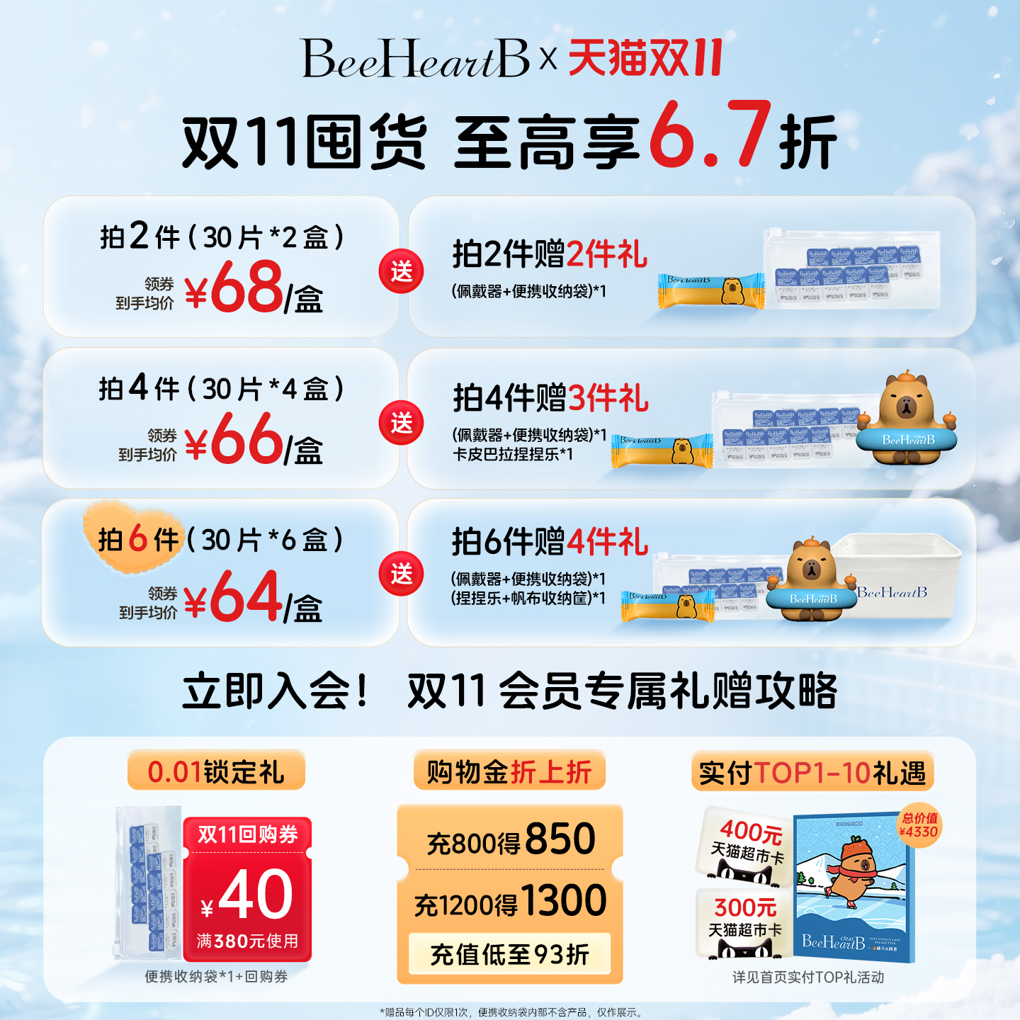 【双11抢购】BeeHeartB卡皮巴拉联名日抛30片近视隐形眼镜蜜心妍