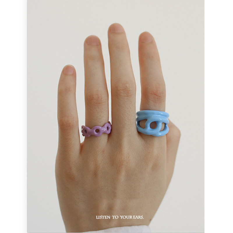 耳边风 彩色戒指女ins潮情侣小众设计滴釉时尚个性夸张马卡龙色