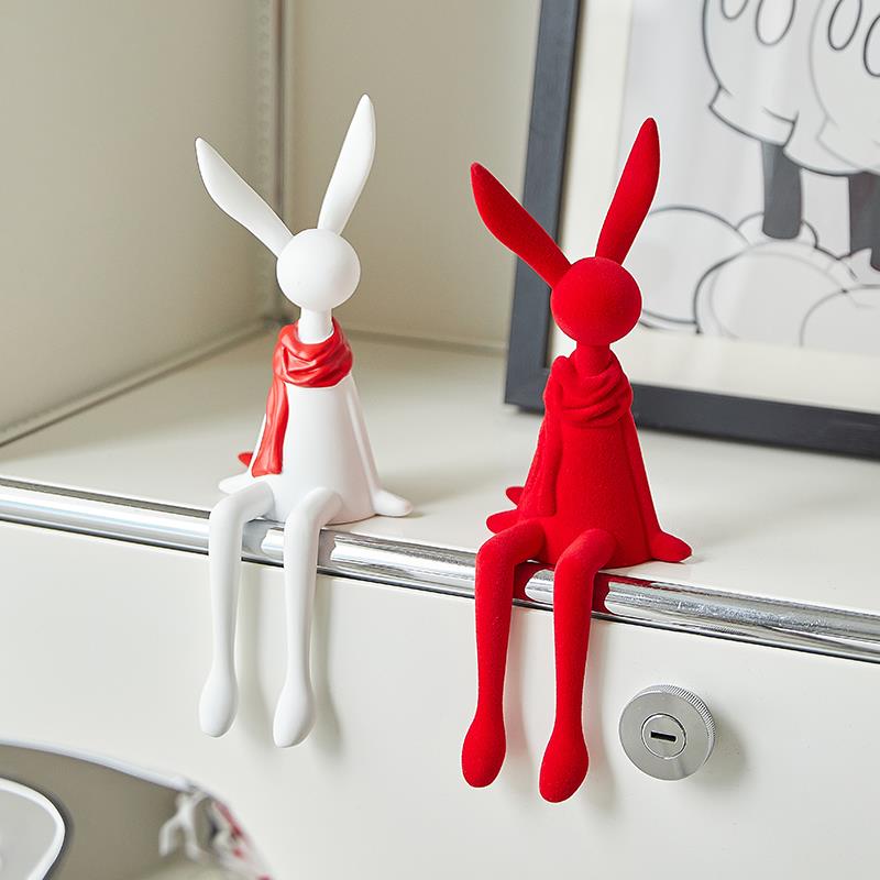 坐姿长耳兔子摆件2025新款客厅酒柜电视机玄关柜高级感小众装饰品