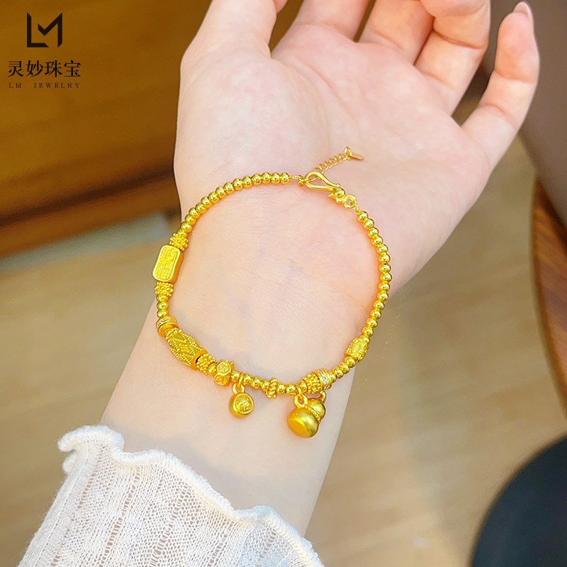 金店同款沙金古法小葫芦福牌珠珠手链福禄算盘跑环手W饰送女友礼