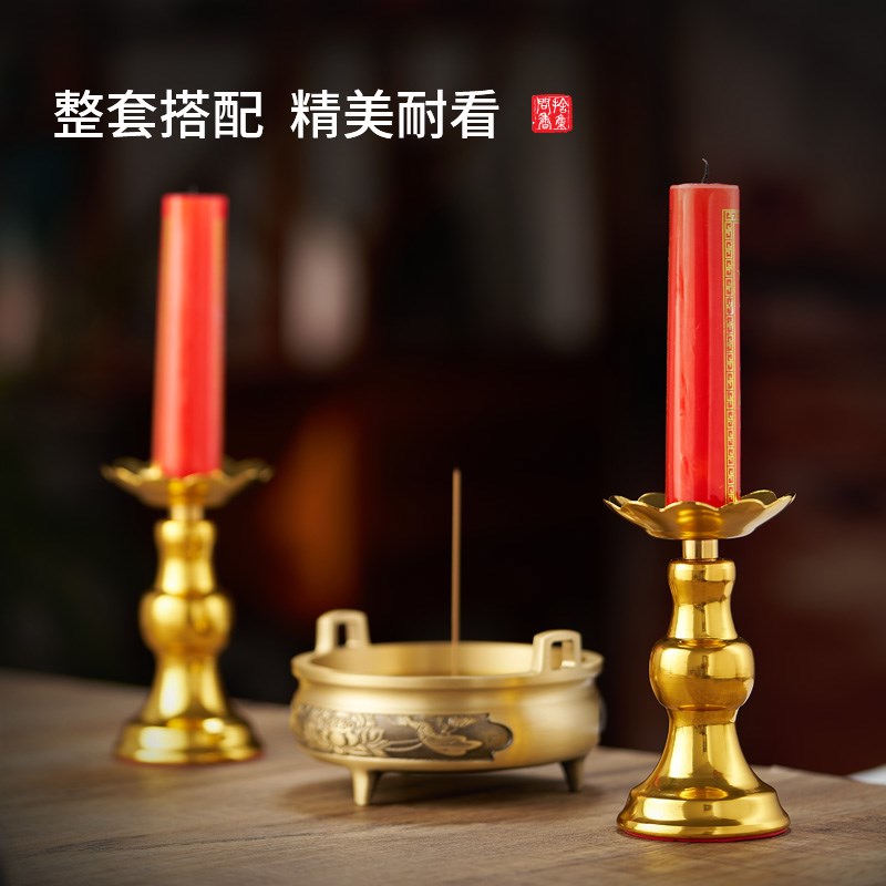 莲花烛台摆件家用供奉桌前酥油灯座香薰蜡烛台高脚上供插香烛底座