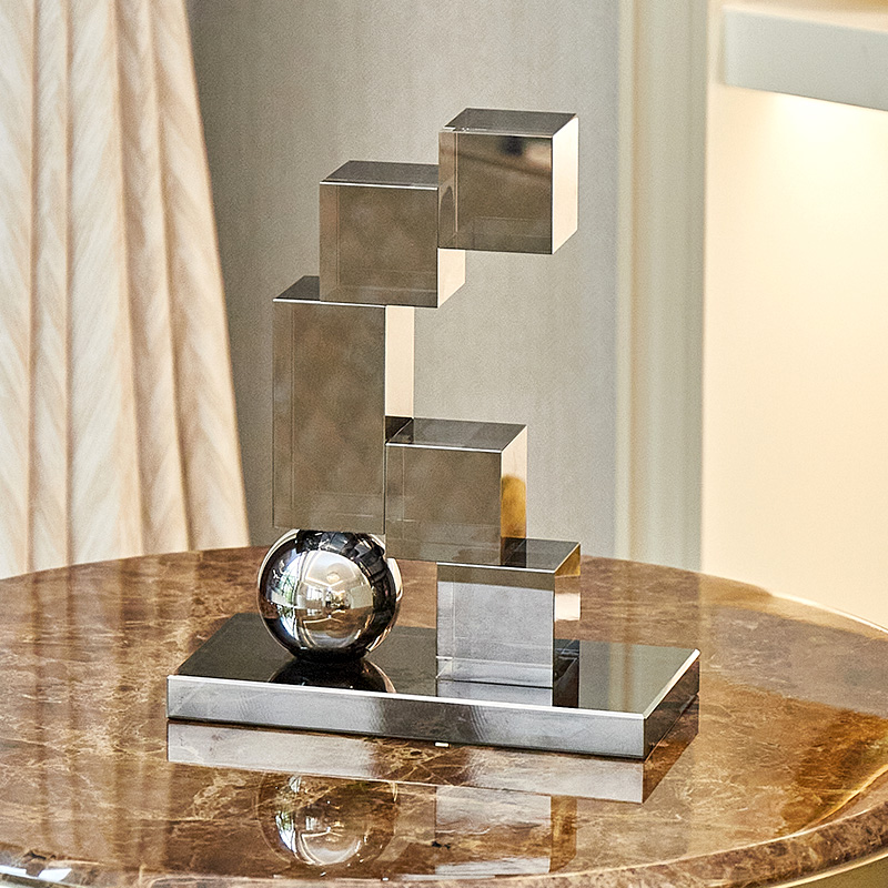 现代简约几何方块水晶摆件玄关B电视柜酒柜办公室桌面装饰品轻奢