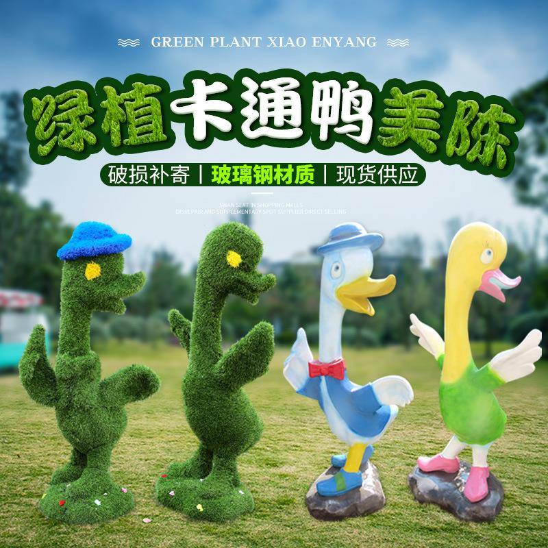 卡通绿植鸭子摆件户外玻璃钢雕塑园林景观花园庭院公园绿地装饰品