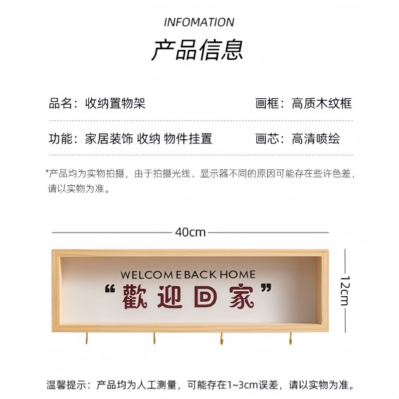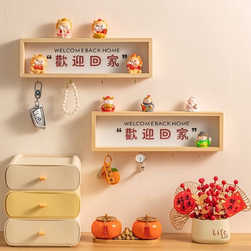 欢迎回家门口装饰摆件入户玄关家居客厅墙面收纳置物架放钥匙神器