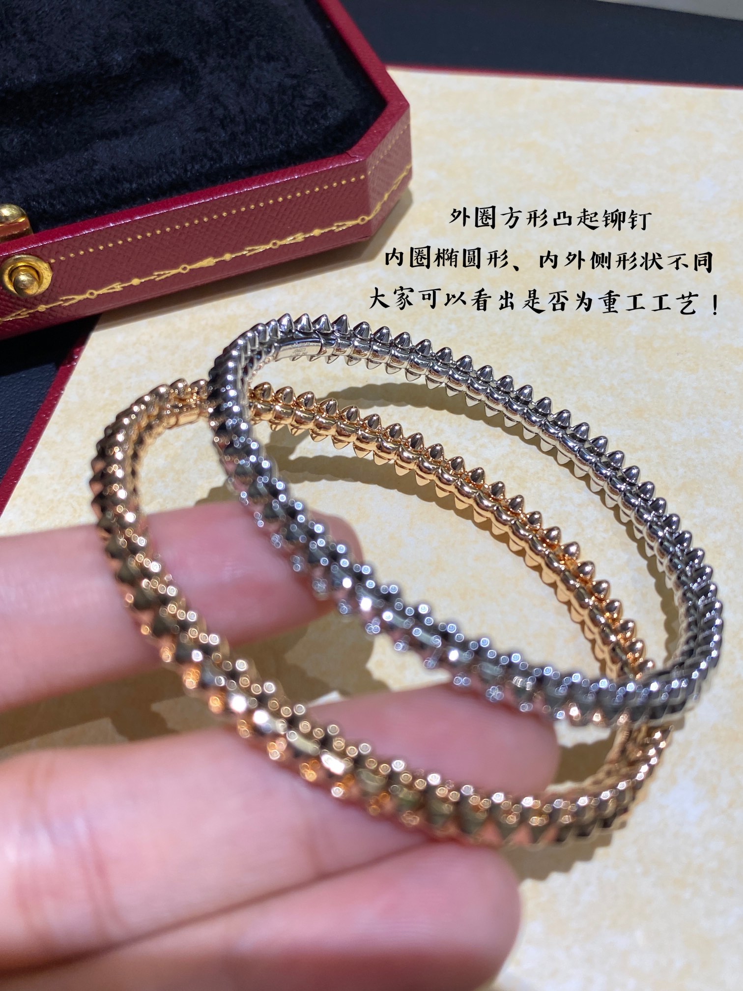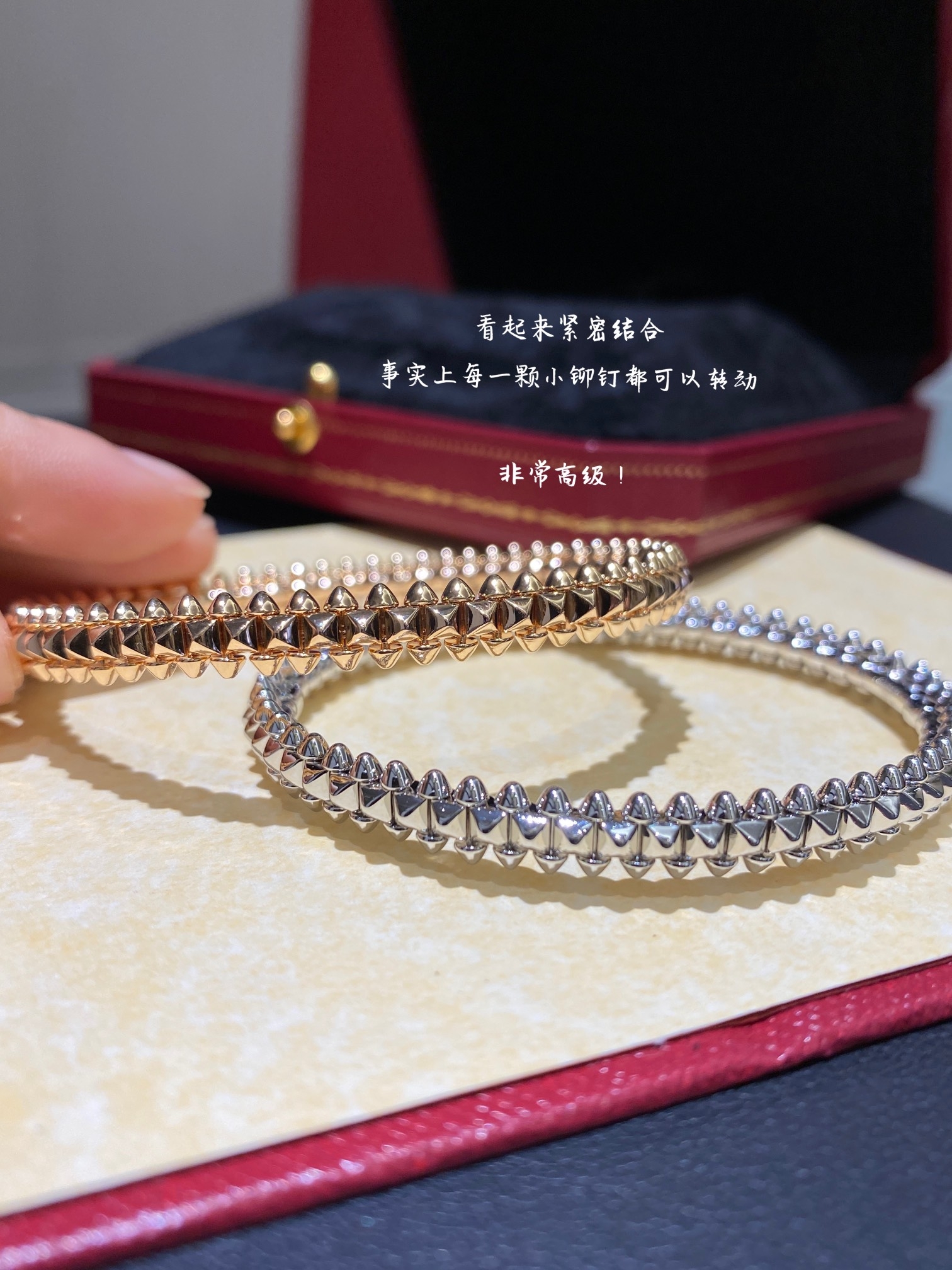 高版本18K玫瑰金铆钉子弹头手镯女 轻奢设计感高级手环送女友礼物