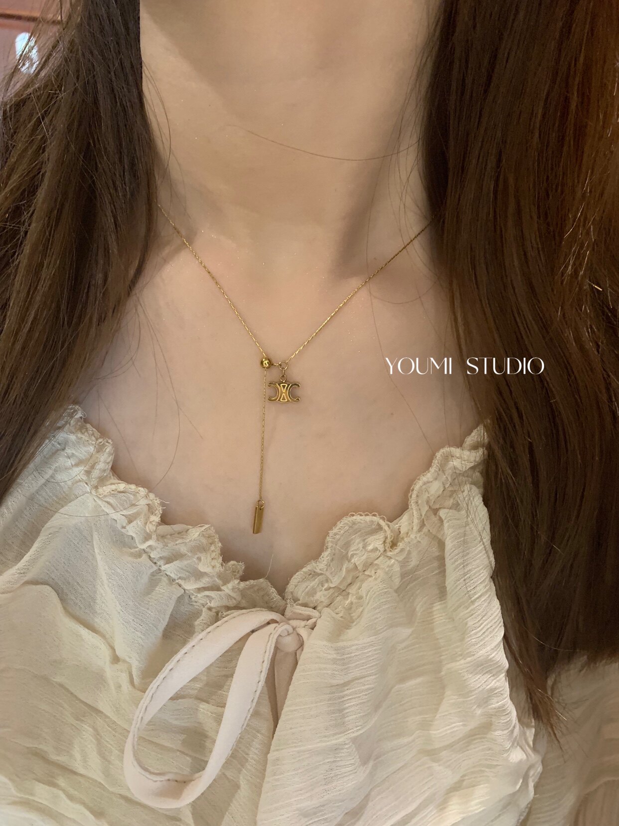 洗澡不用取!镀18K彩金凯旋门轻奢项链女锁骨颈链小众设计感高级