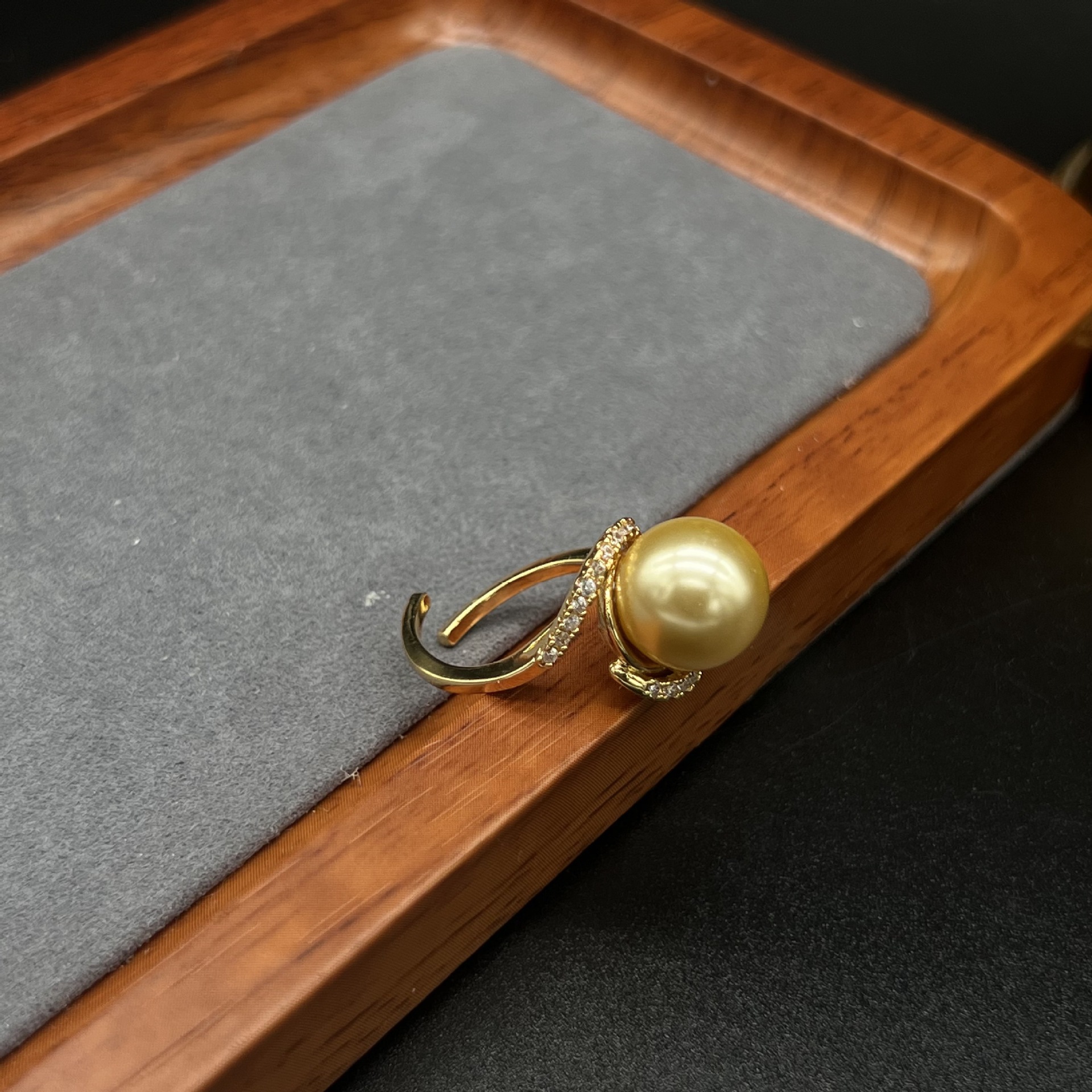 中古新品淡水珍珠戒指女士气质时尚雅致微镶皓石开口指环现货