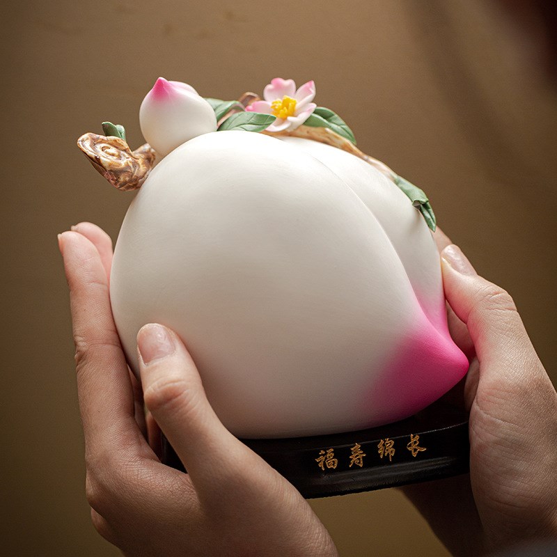 寿桃摆件陶瓷工艺品堂装饰u供桌用品家居饰品送老人贺寿祝寿礼品