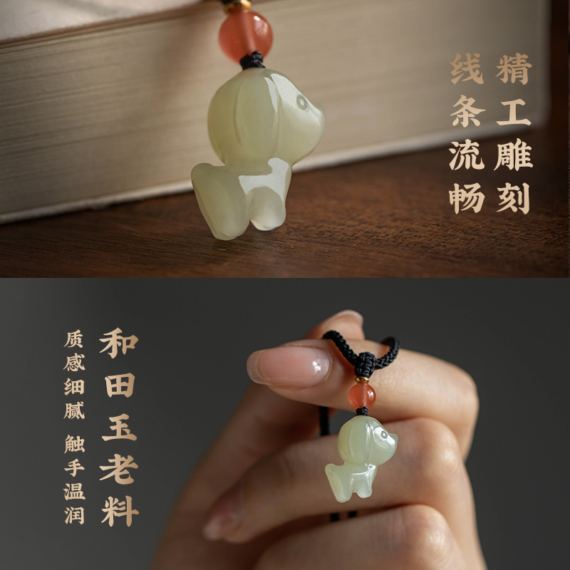 一兴天然和田玉生肖狗吊坠挂件属相兔六合首饰项链送女友礼物