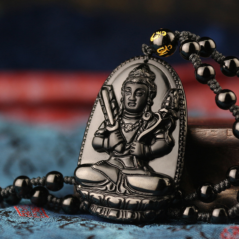 天然黑曜石十二生肖吊坠属龙蛇狗猪鼠牛护兔男士女随身项链送礼用